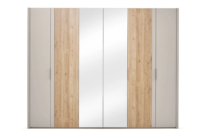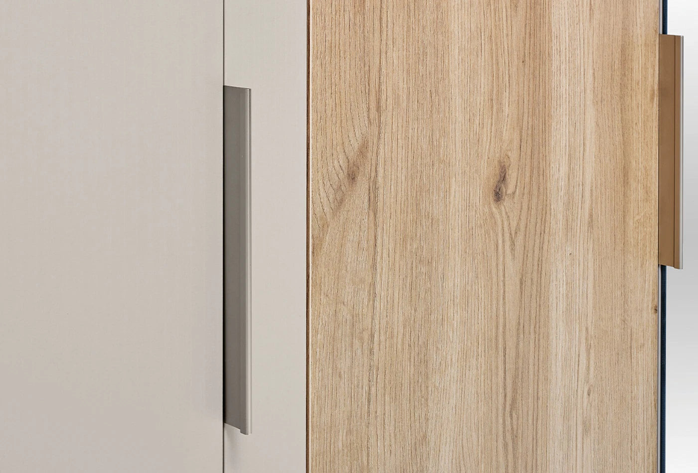 Modern dizájnelemekkel figyelemre méltó Cante 6 ajtós gardróbszekrény, természetes tölgy és bézs színkombinációjával meleg és elegáns atmoszférát kölcsönöz hálószobáinak.