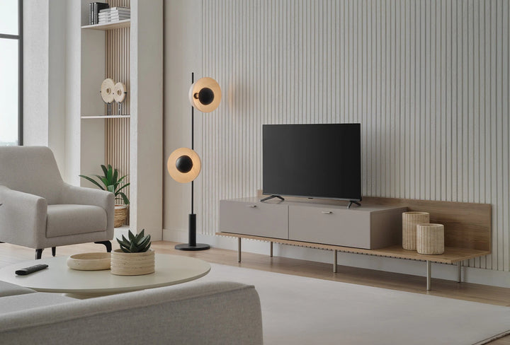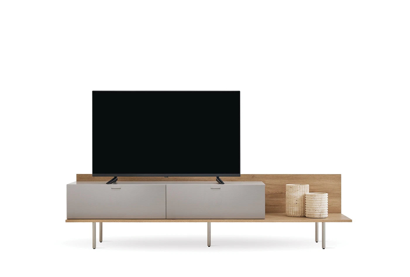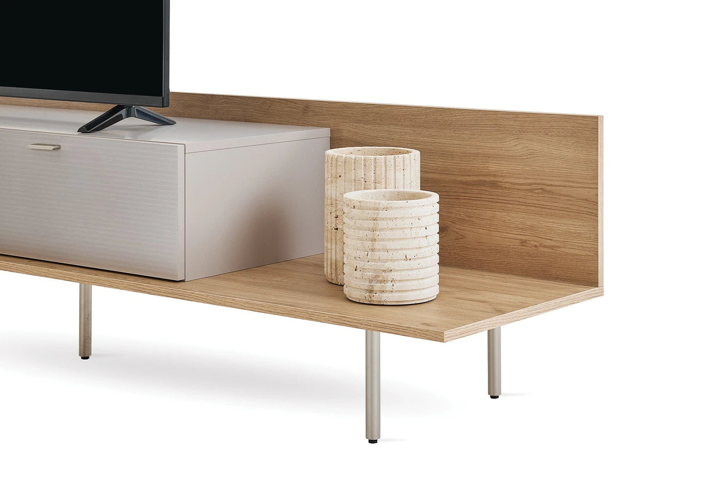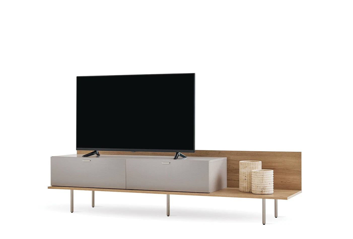 A modern életterekbe elegáns érintést hozó Cante Tv Állvány, természetes tölgy és bézs színkombinációjával meleg és hívogató atmoszférát teremt.