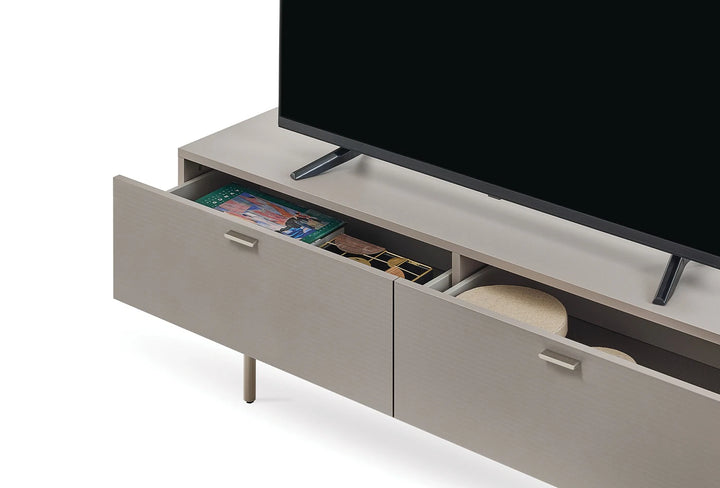 Moduláris szerkezete minden térhez illeszkedik, miközben speciális csíkos textúra alkalmazásaival és elegáns fiókjaival tökéletesen ötvözi az esztétikát és a funkcionalitást.