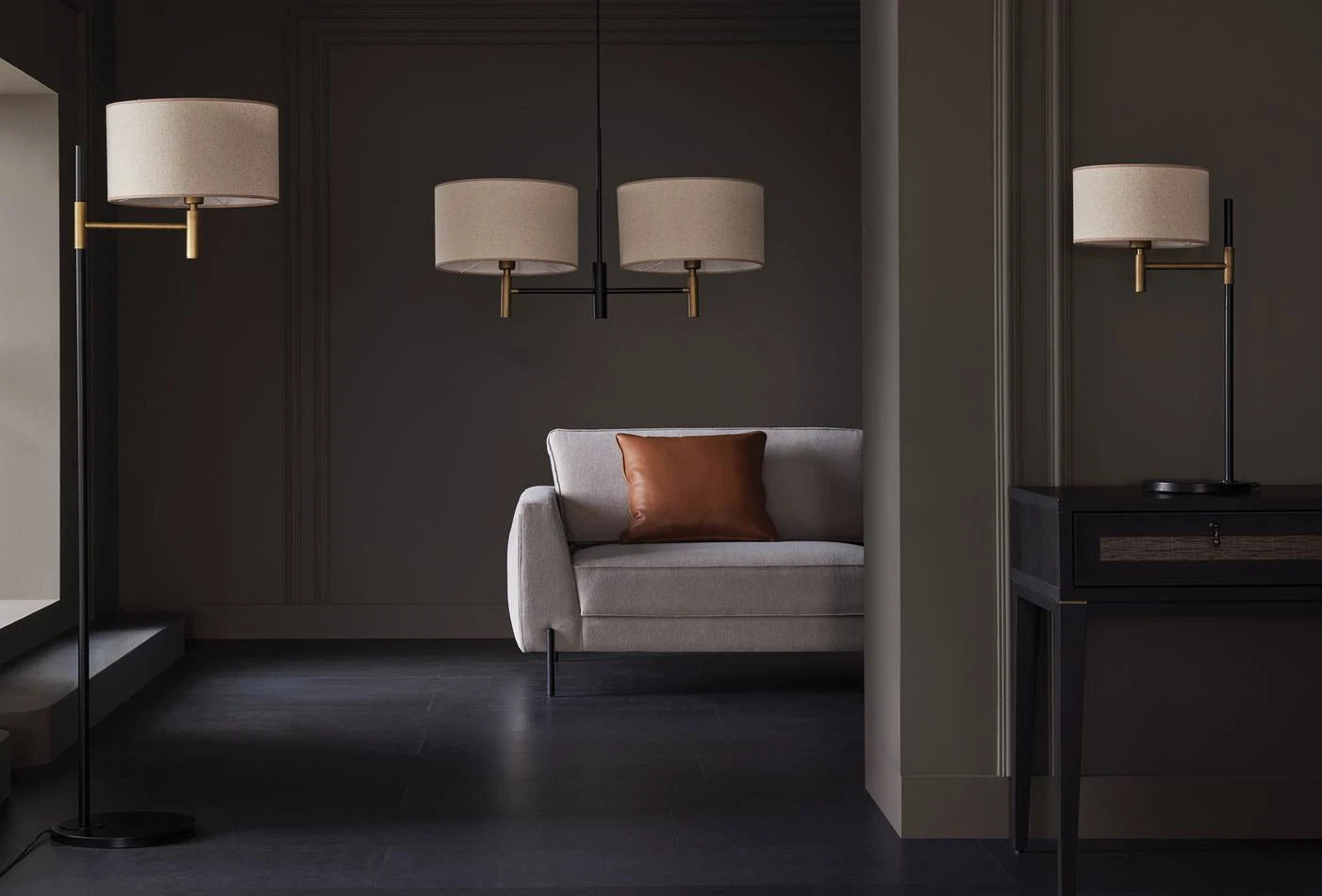 Fekete fém bevonatait feltűnő antik sárgaréz részletekkel gazdagító Clementine Világítás, modern krém fej formájával tökéletesen kiegészíti a kortárs dekorációs elrendezéseket, esztétikus stílussal ötvözve a fény terekre gyakorolt hatását.