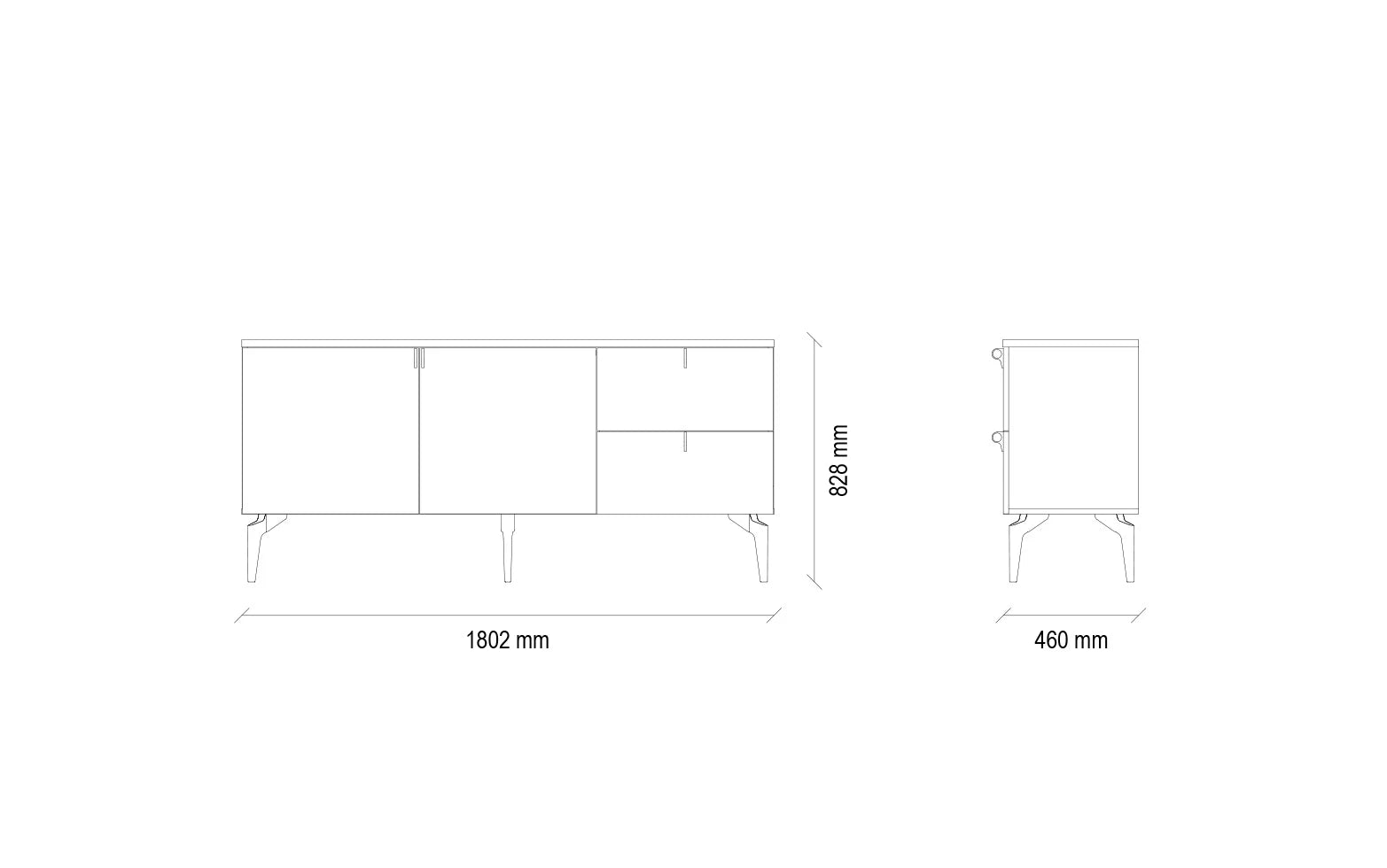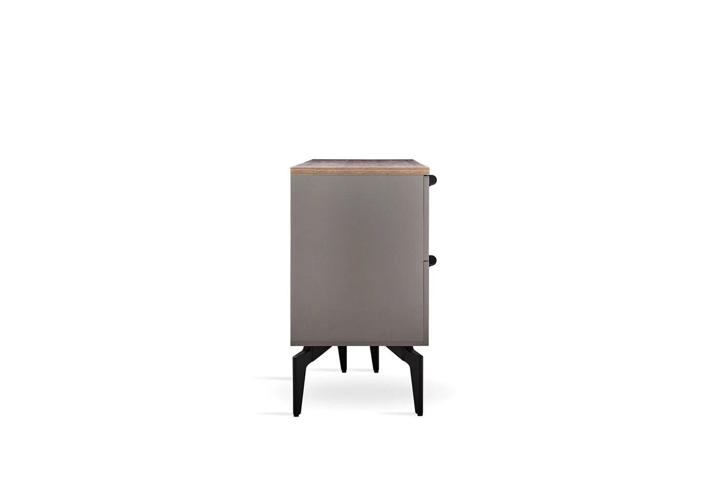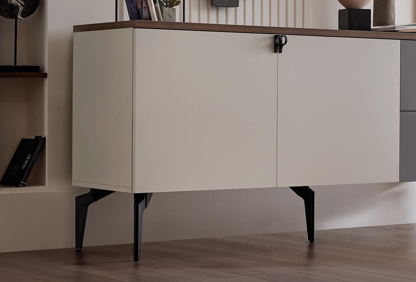 A CORDELL tálalószekrény a szűkebb helyeken is kényelmes használatot biztosító funkcionális kialakítását a matt fekete lábak visszafogott eleganciájával egészíti ki.
