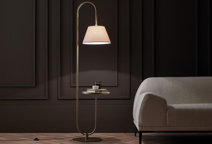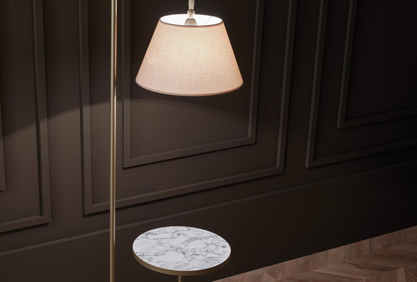 Lenyűgöző arany váz dizájnjával és bézs fejével a modern stílus hatásos példáját bemutató EPIC ÁLLÓLÁMPA, asztal funkciójával ötvözi az esztétikát és a funkcionalitást. Elegáns értelmezést ad az új szezon sokoldalú dizájnfelfogásának.