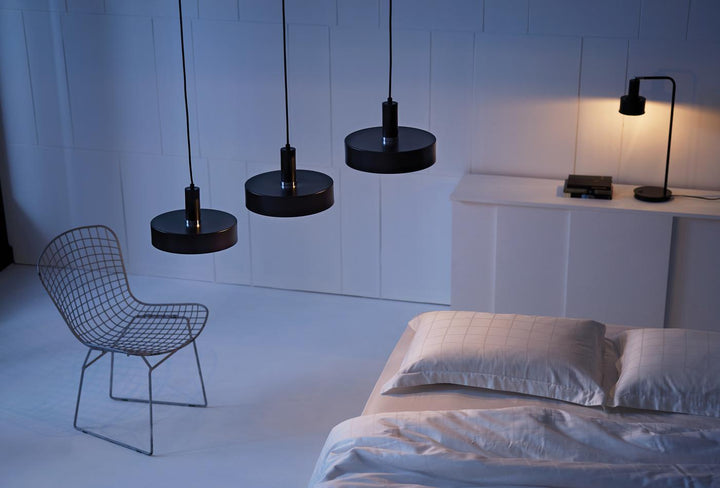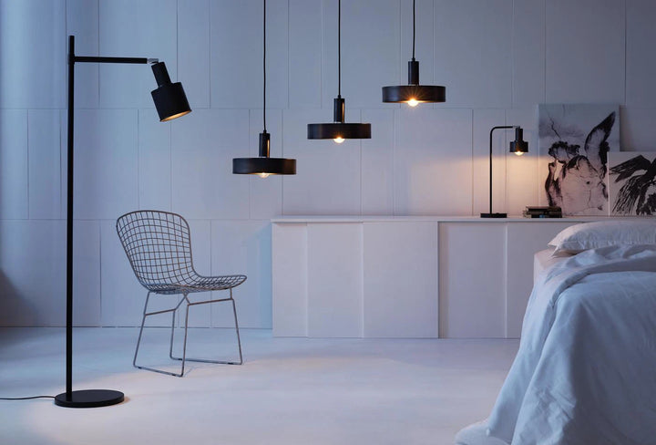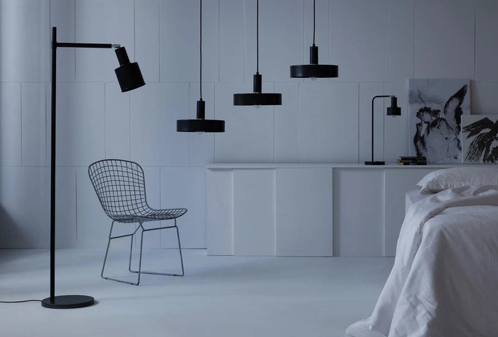 Fekete fém vázát és fejét króm részletekkel ötvözve elegáns dizájnt mutató Fama Világítás, az ipari stílus elegáns példáját kínálja, amely kiemelkedik a modern dekorációs elrendezésekben. A dekorációban feltűnő részletként kiemelkedő hármas fej dizájn mellett a geometrikus formák letisztult, de erős hatását is a terekbe viszi.