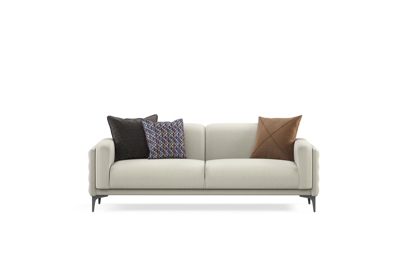A FORTUNA 2,5 SZEMÉLYES KANAPÉ elegáns és praktikus: a háttámláján található különleges varrás stílusos, a fémmel megerősített fa váz pedig tartós. Modern dizájnja dinamizmust visz otthonában, miközben maximális kényelmet nyújt.
