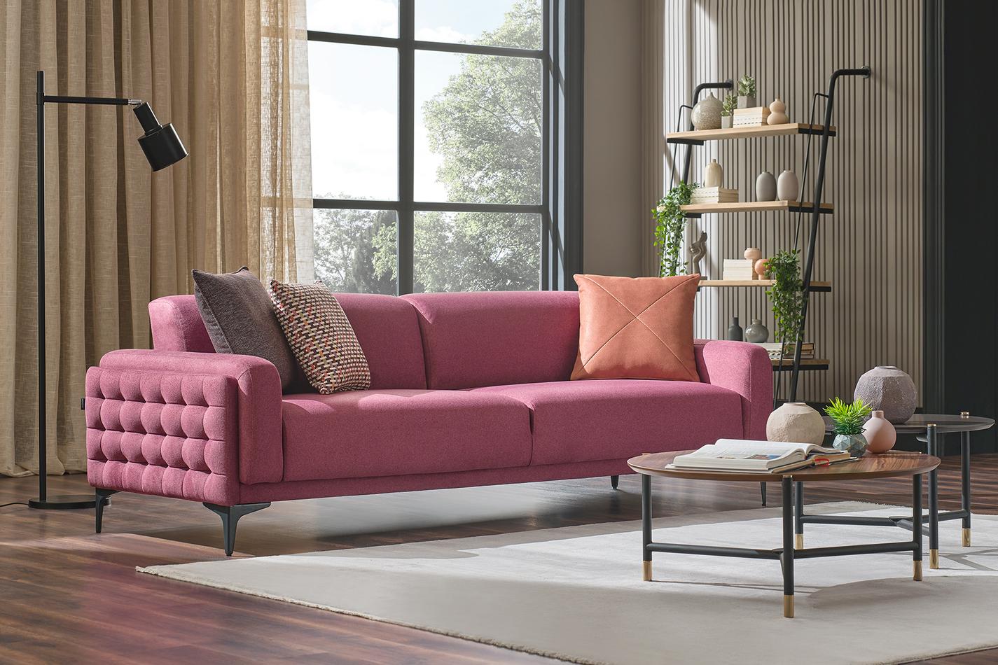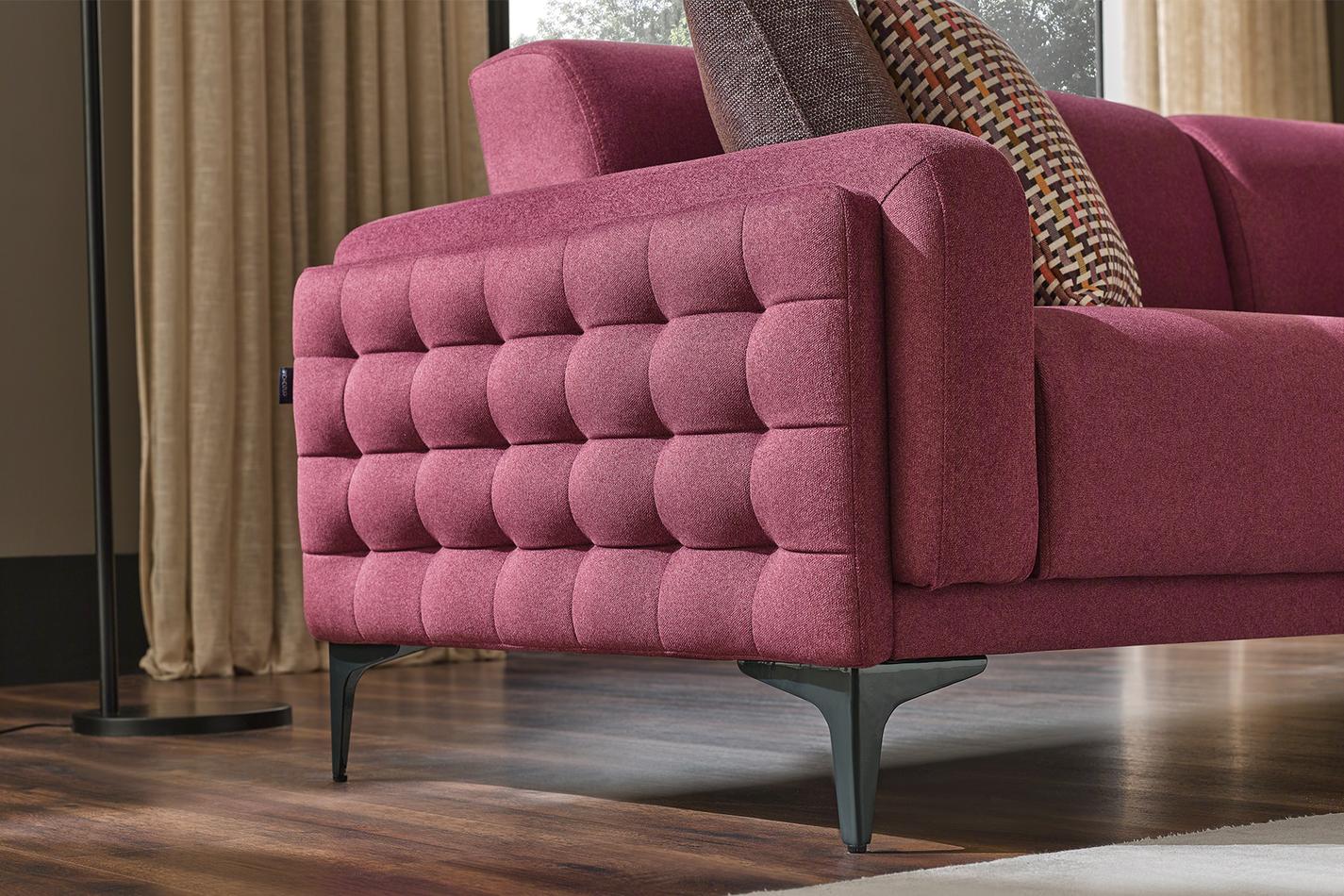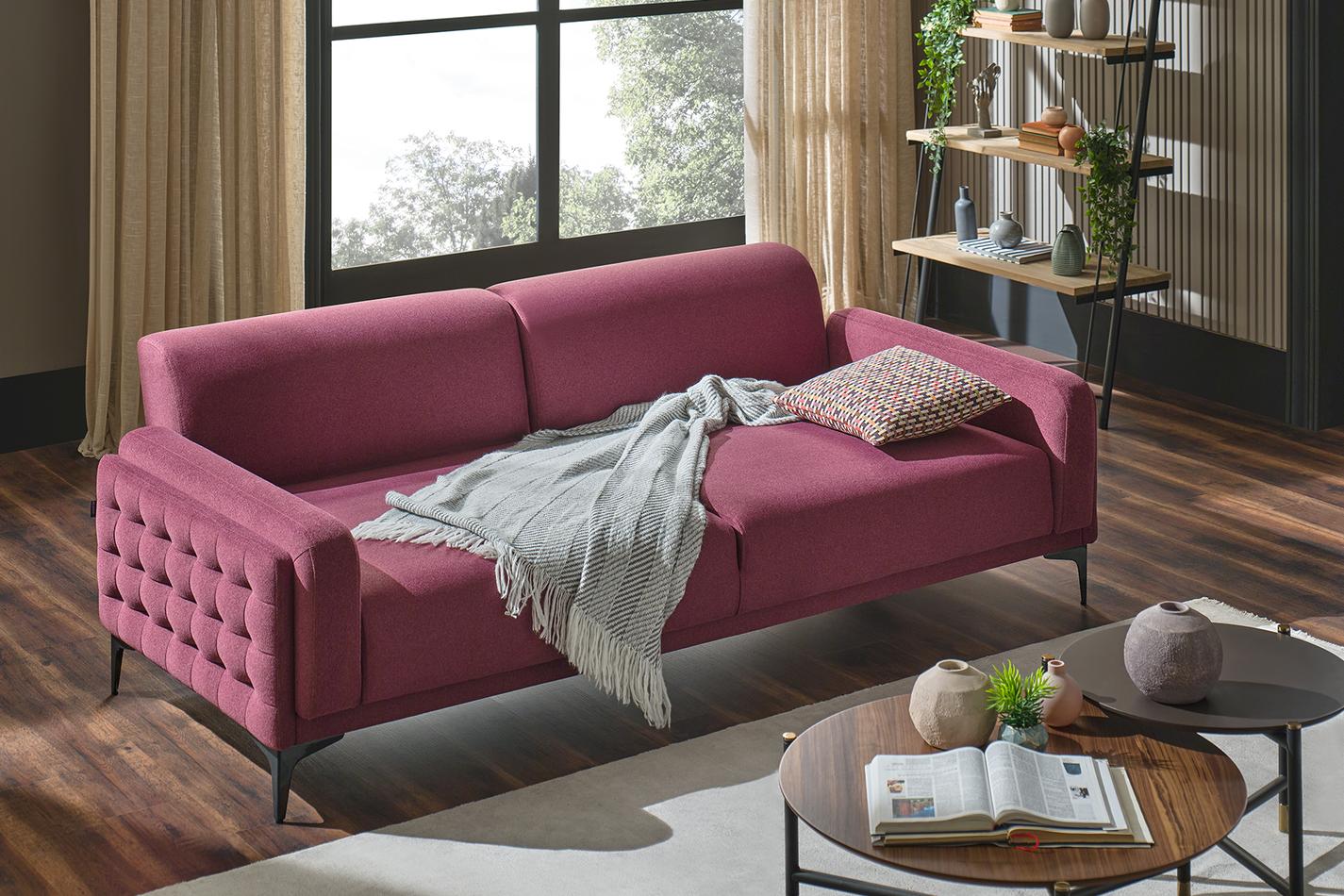 A FORTUNA 3 személyes ágyazható kanapéágy különleges varrással díszített hátpárnájával stílusos megjelenést kölcsönöz a nappalinak, miközben funkcionális kialakításáról sem feledkezik meg.