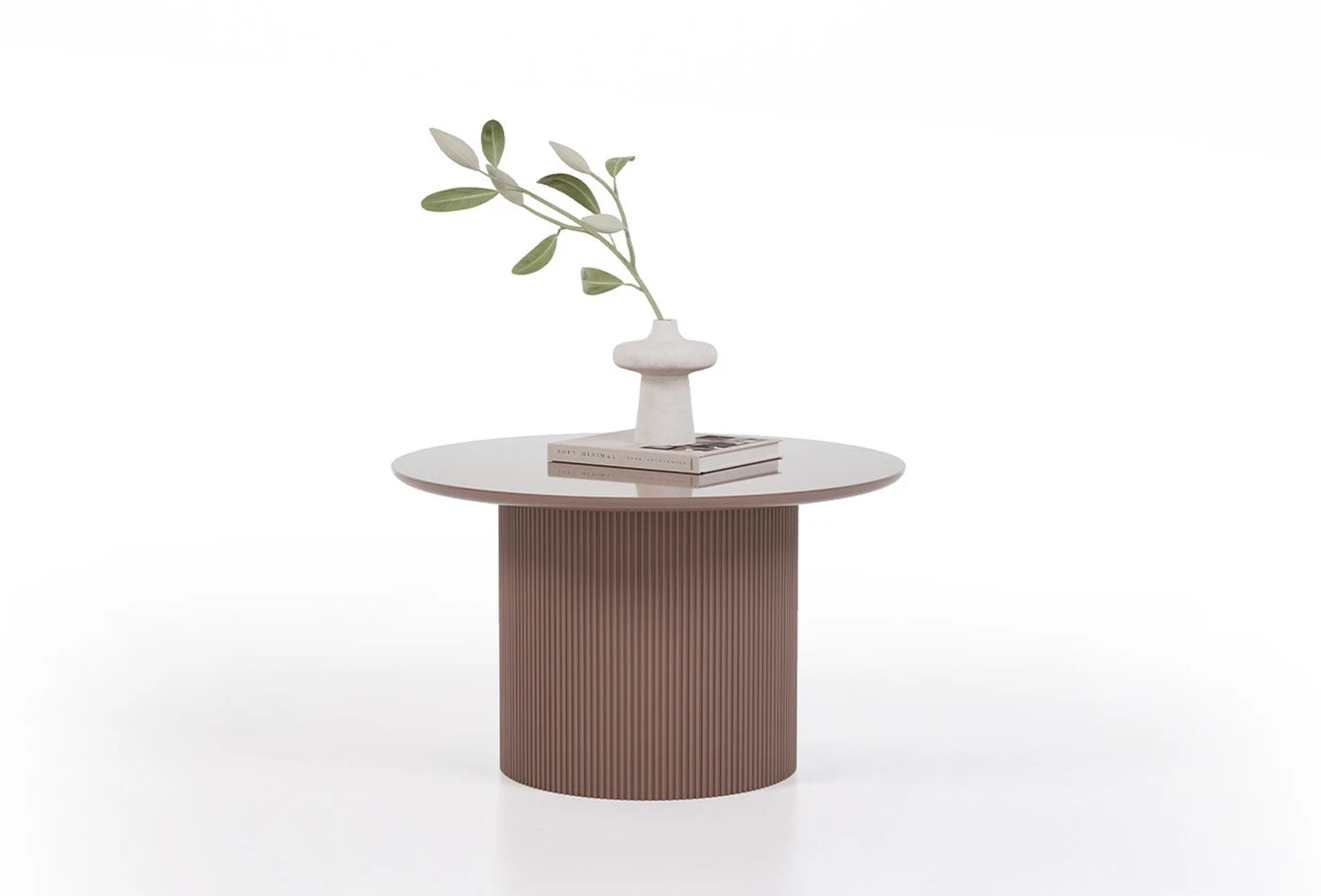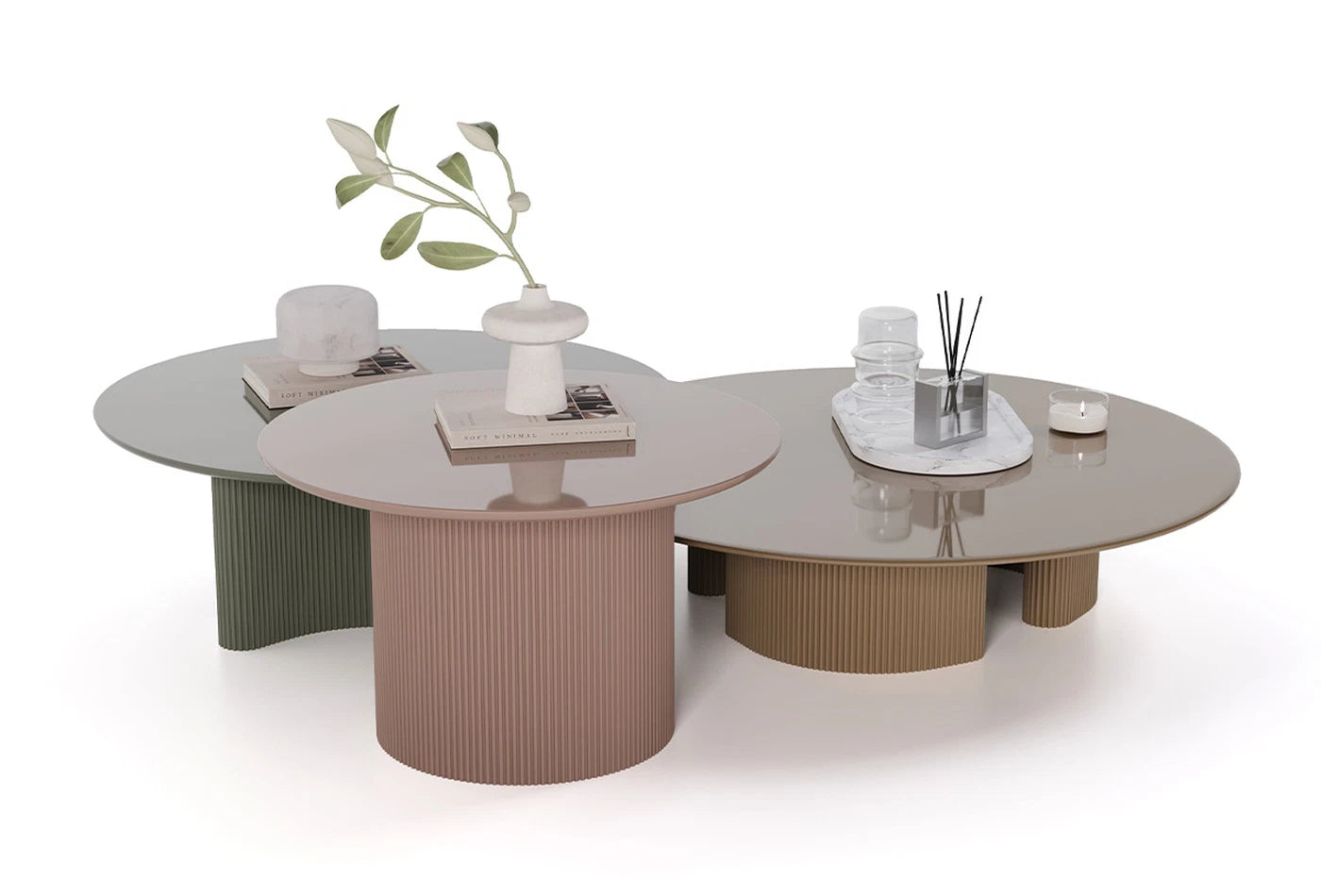 A fényes festett kerek MDF felső lap, a naplemente színeinek lenyűgöző átmenetével valóságos vizuális élményt nyújt.