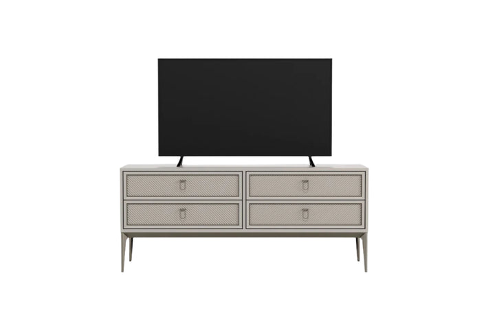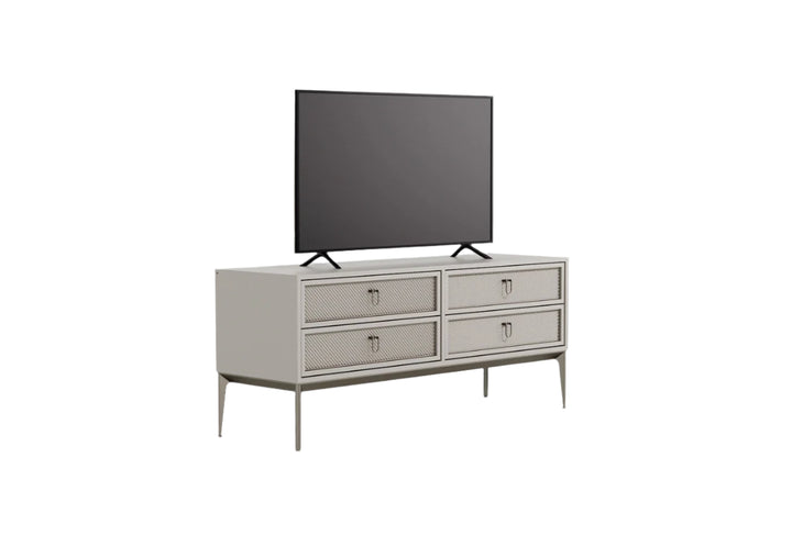 A HERA TV állvány 4 fiókjával bőséges tárolóhelyet kínál, míg a fényes bronz fogantyúk és a szálcsiszolt bronz lábak tovább fokozzák az eleganciáját.
