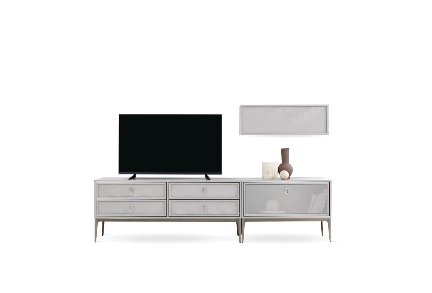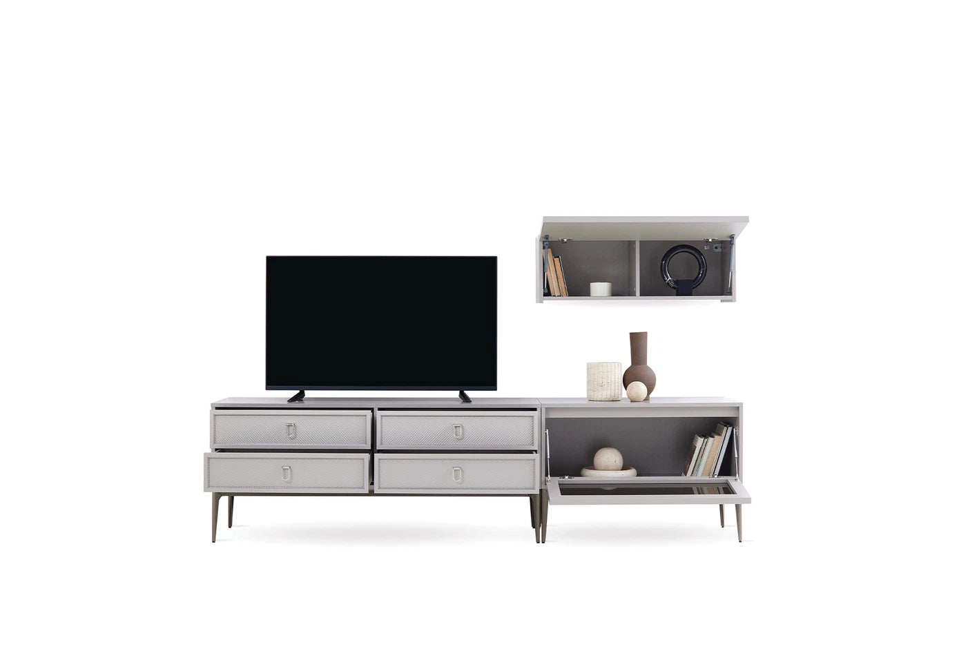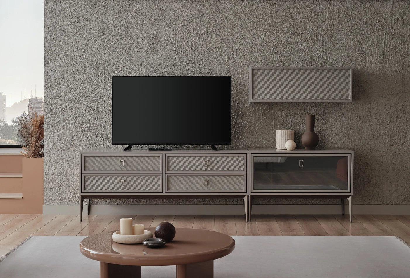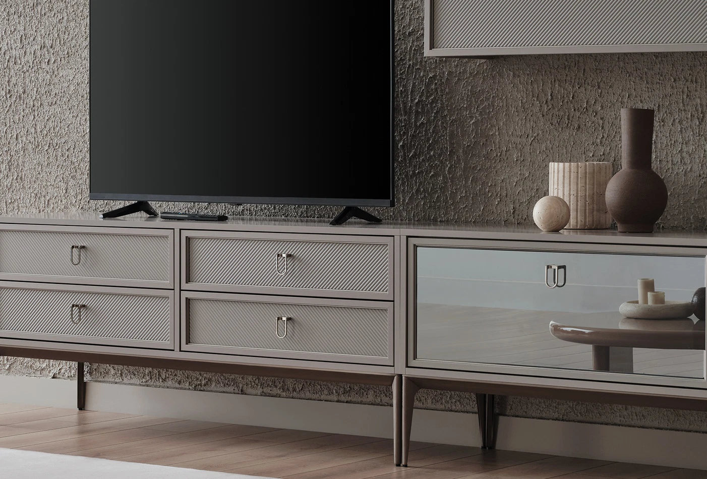 A Hera Tv állvány modern és elegáns dizájnjával minden részletében magával ragadó élményt nyújt. Válogatott anyagokból készült, 155 cm-es és 95 cm-es opcióival különböző életterekhez alkalmazkodik.