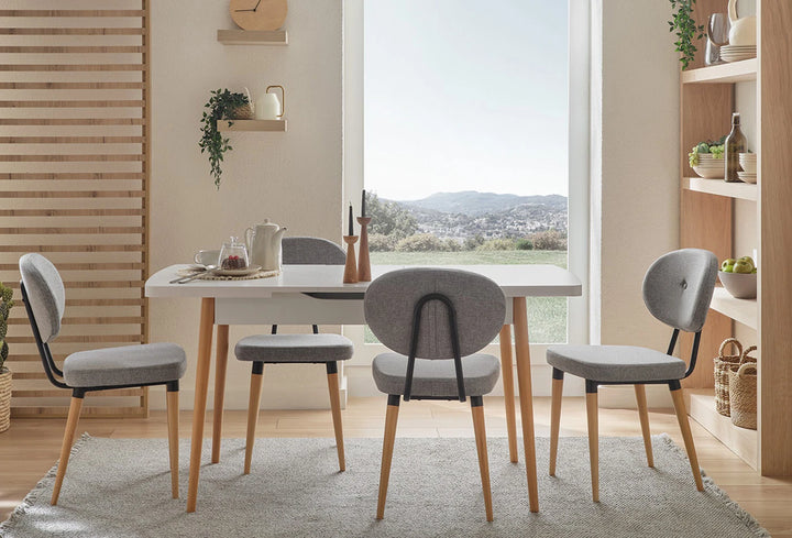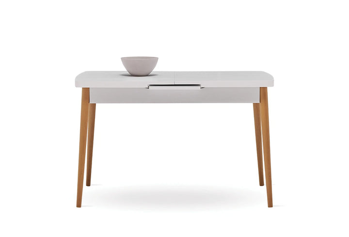 A fehér és natúr fa színkombináció tökéletes harmóniájával tervezett LARGOS NYITHATÓ KONYHAASZTAL esztétikus megjelenésével és funkcionális szerkezetével emelkedik ki.