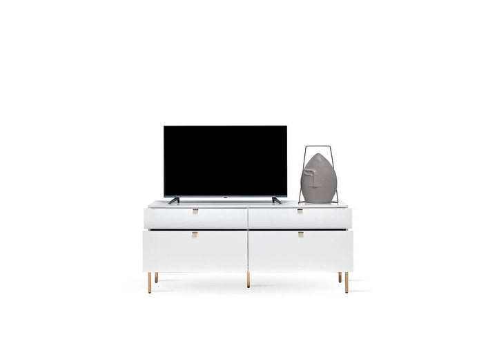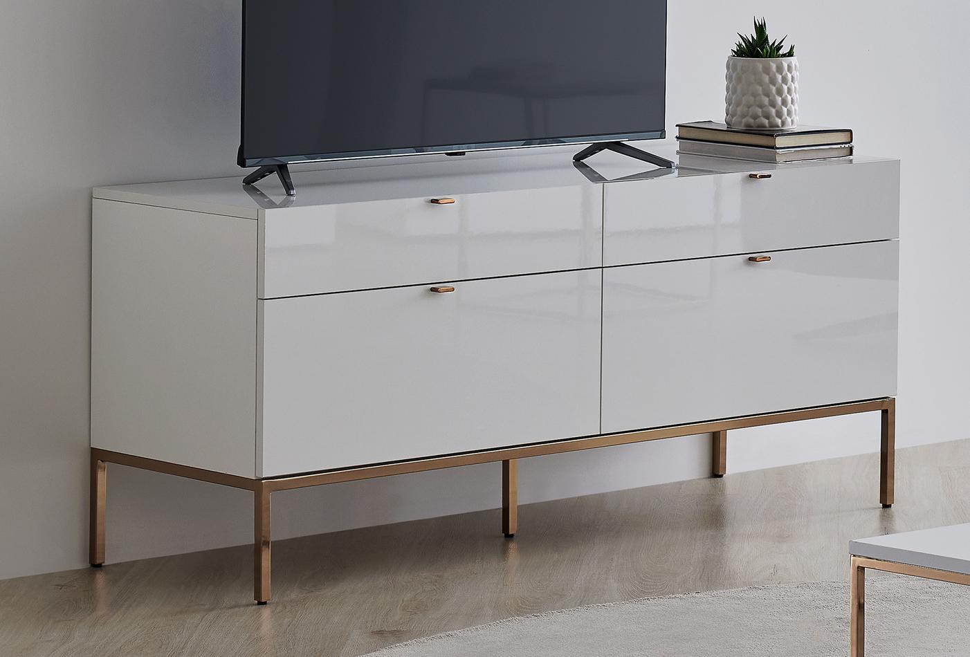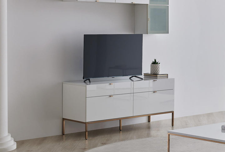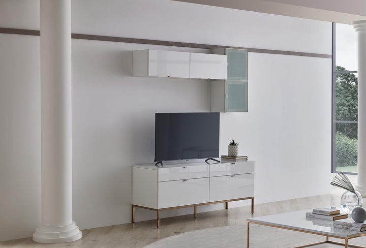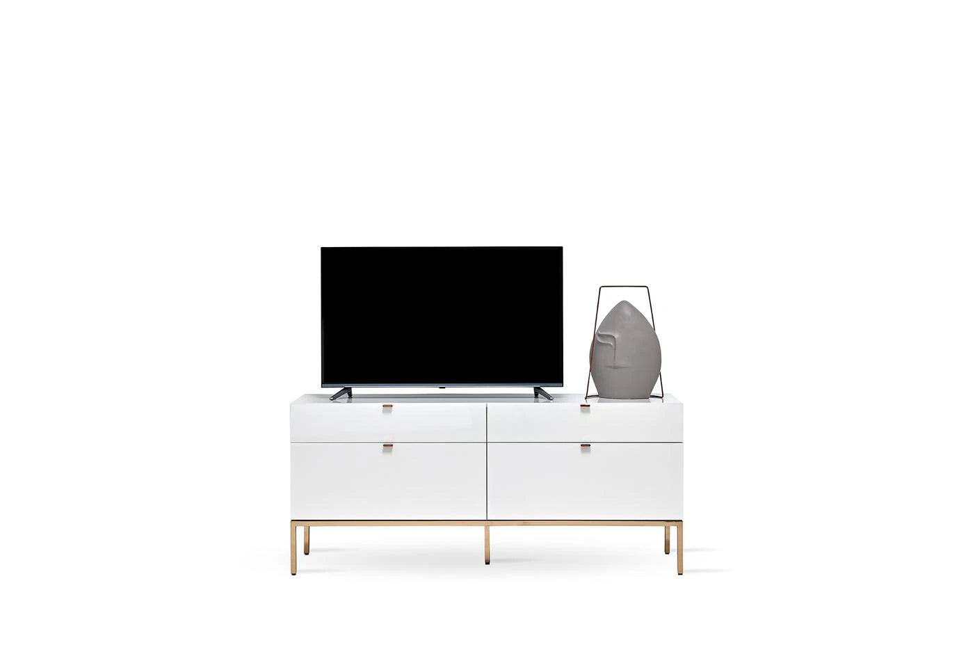 A sorozathoz tartozó speciális magasfényű fehér felületével a monokróm stílus időtlen esztétikáját tükröző Legato Tv-állvány gazdag funkcionalitásával dinamikus, egyedi és kortárs élettereket hoz létre.