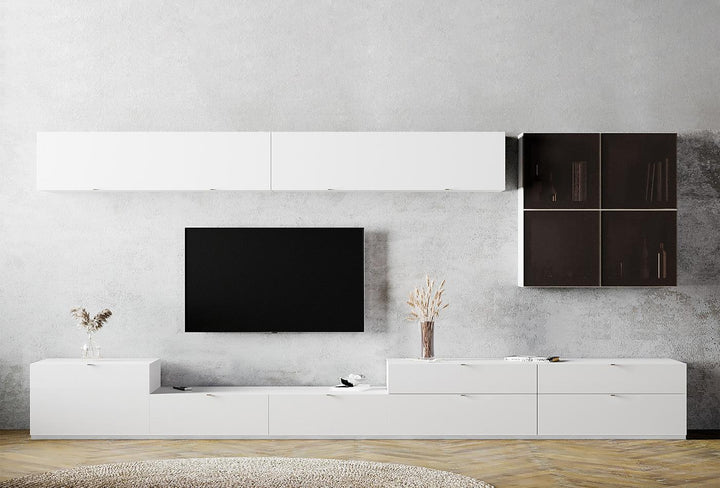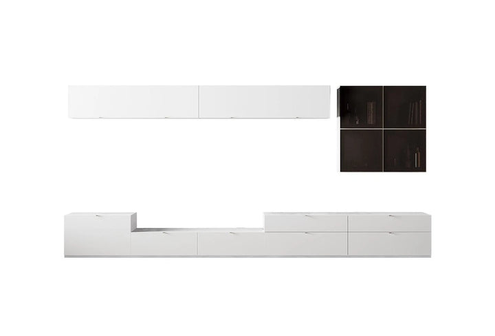 A sorozatra jellemző fényes fehér felületkezeléssel a monokróm stílus időtlen eleganciáját tükröző LEGATO vitrines szekrénysor gazdag funkcionalitásával dinamikus, eredeti és modern élettereket hoz létre.