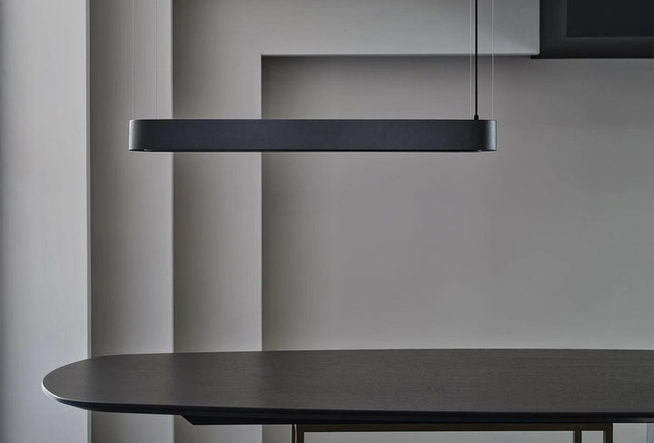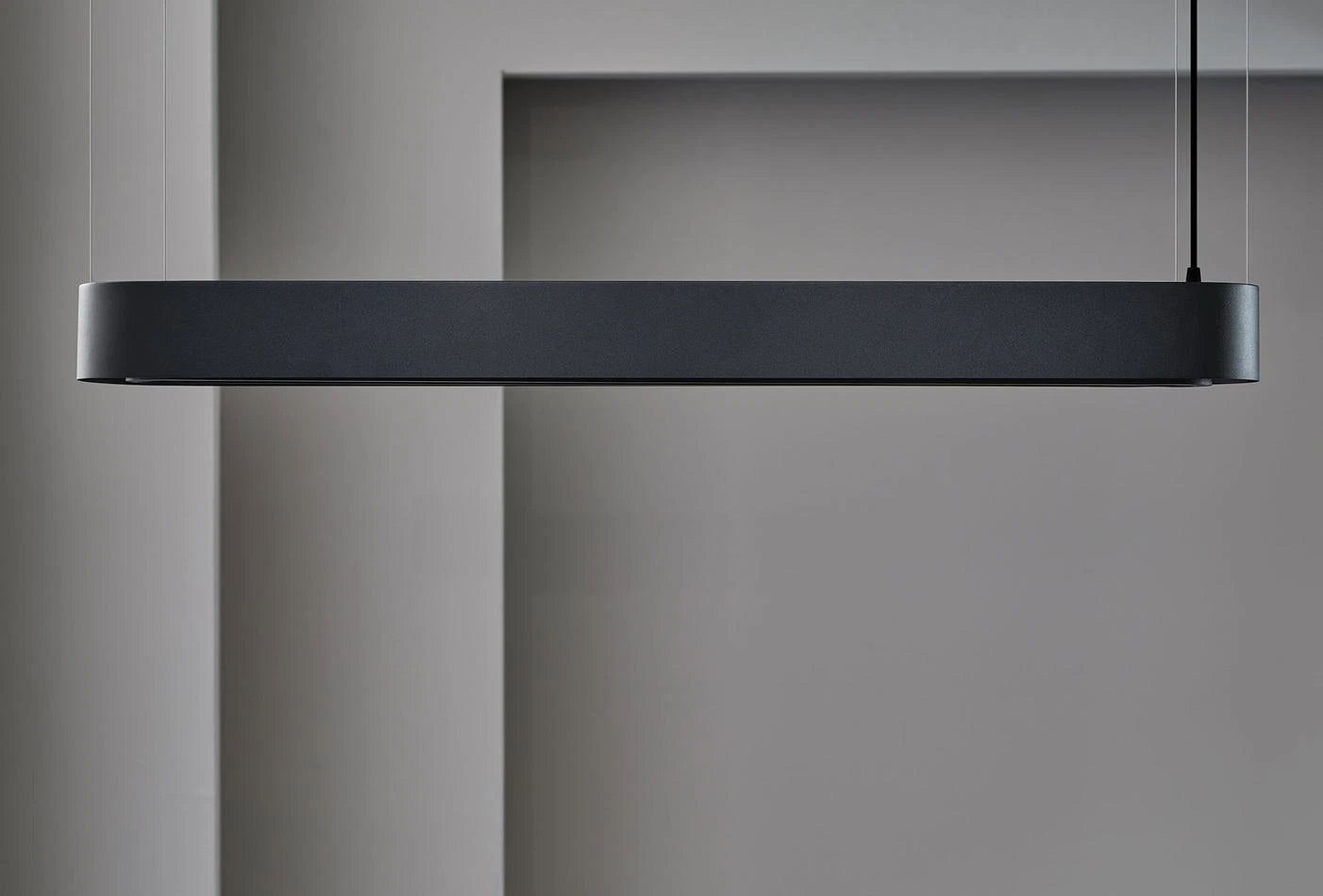A LINEN FÜGGŐLÁMPA stílusa minimalista, hosszúkás lámpabúrája csupán egy széles „csík” oldalról, melyben LED világítás adja a fényt. Jó példa arra, hogy hogyan lehet exkluzív anyagok felhasználásával kifinomult stílust létrehozni.