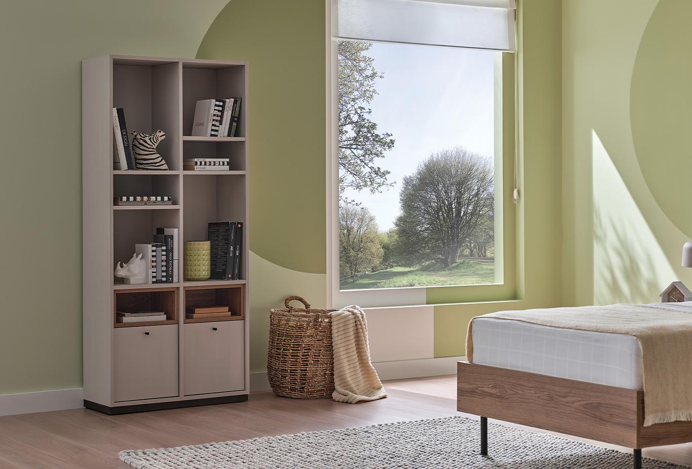 A tinédzser szobák igényeit kielégítő tulajdonságokkal rendelkező LORETO KÖNYVESPOLC, minimalista és innovatív atmoszférát is teremt.