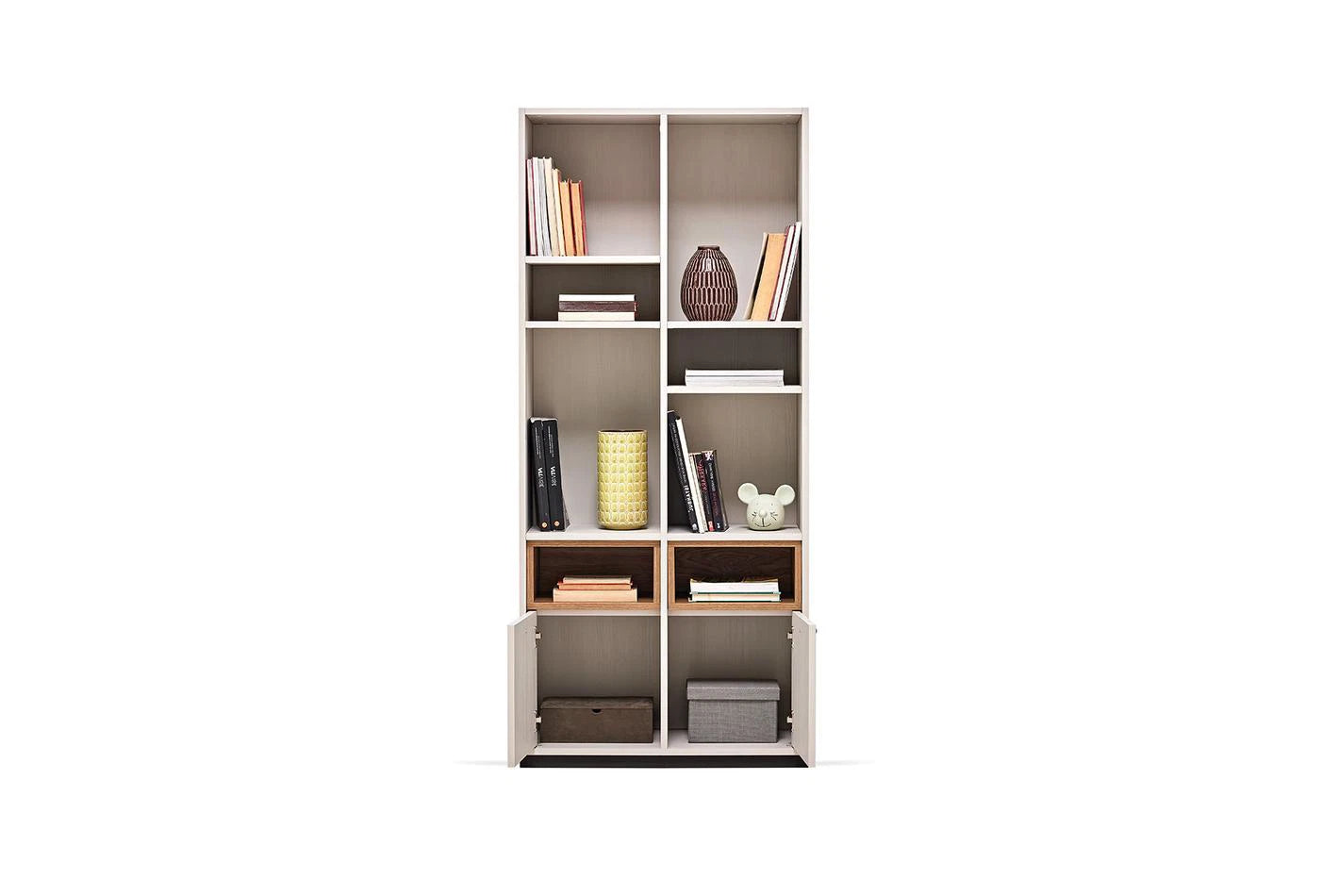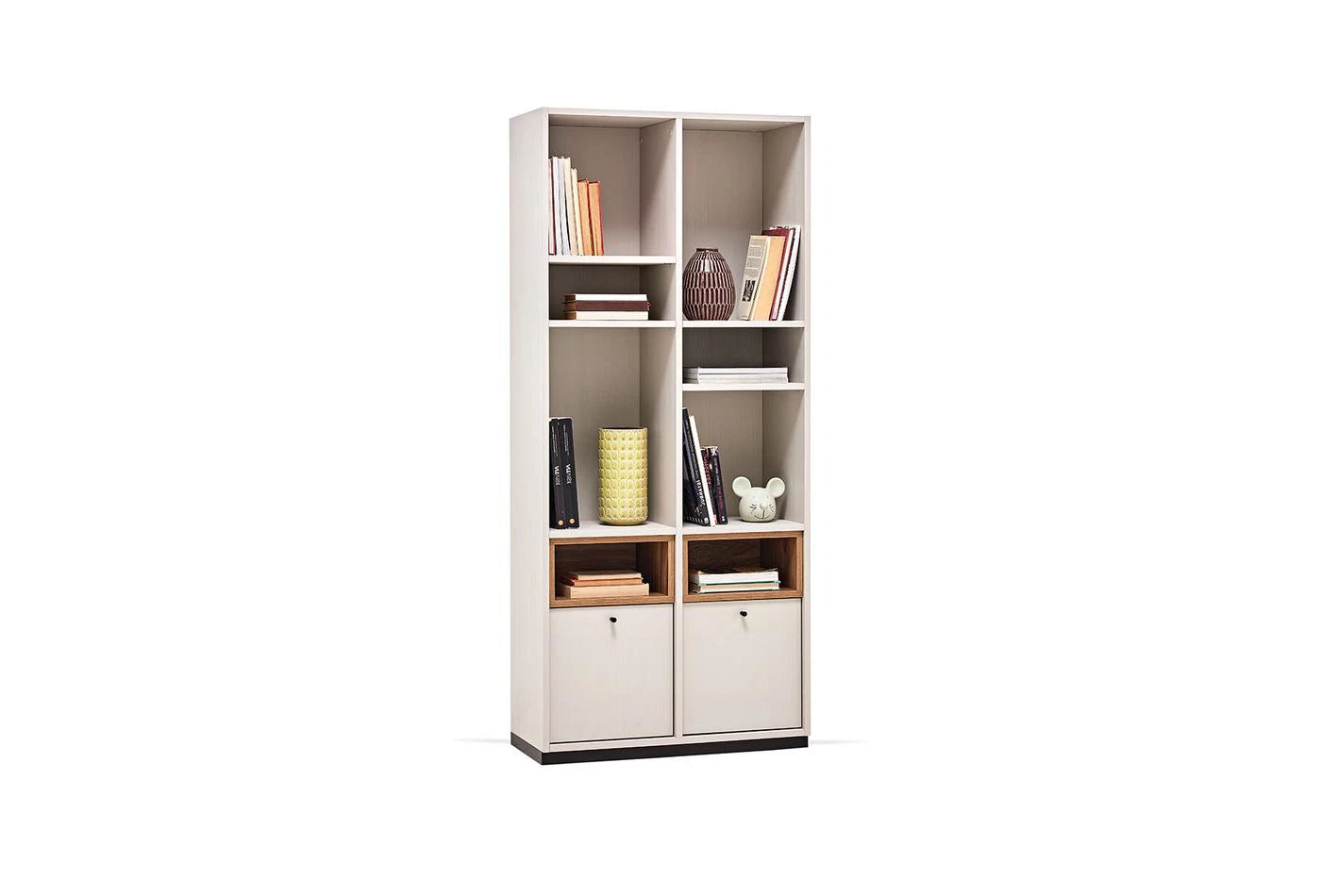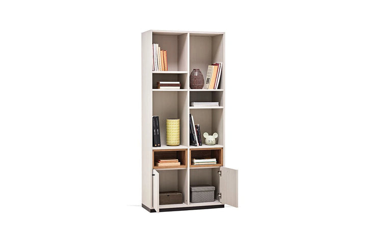 Természetes megjelenésével tökéletesen kiegészíti a bútorokat a LORETO KÖNYVESPOLC, többcélú nyitott polcainak dinamikus dizájnjával és mély textúrájú felületével elegáns tárolóhelyet biztosít.