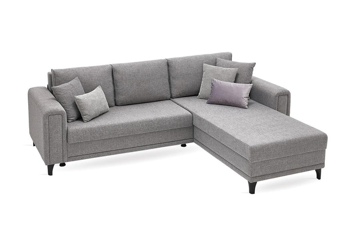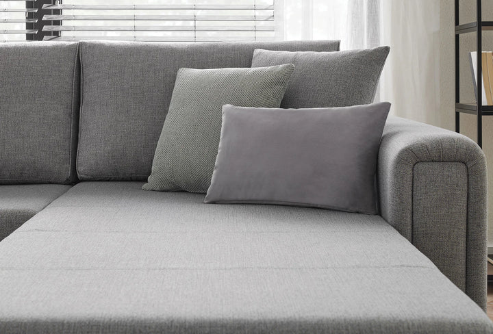 A MARIS L alakú kanapé gazdag funkcióival és lenyűgöző dizájnjával tűnik ki. A garnitúra színvilágát öt darab, mintás és egyszínű díszpárna teszi gazdagabbá.