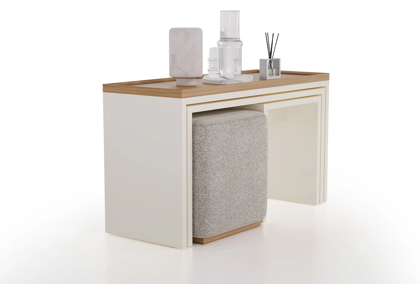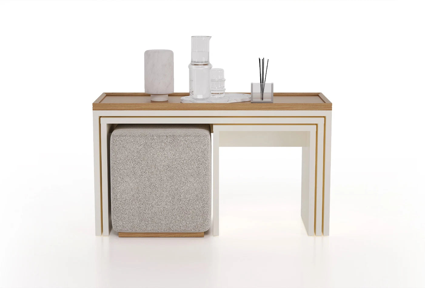 Az eleganciát és funkcionalitást egyszerre kínáló MARSANA DOHÁNYZÓASZTAL, két különböző dohányzóasztal alternatívájával könnyen illeszkedik a különböző dekorációkhoz, míg tölgy és krém színével esztétikát ad az élettereknek. A dizájnját kiegészítő ládás dohányzóasztal puff pedig dekoratív és praktikus használatot is biztosít.