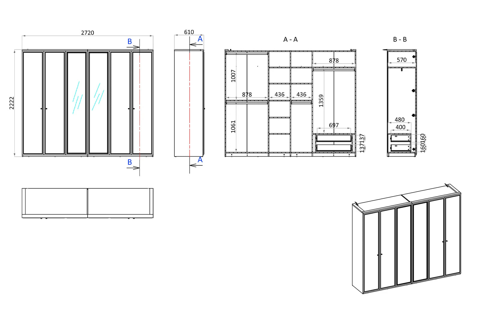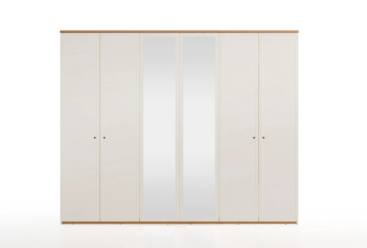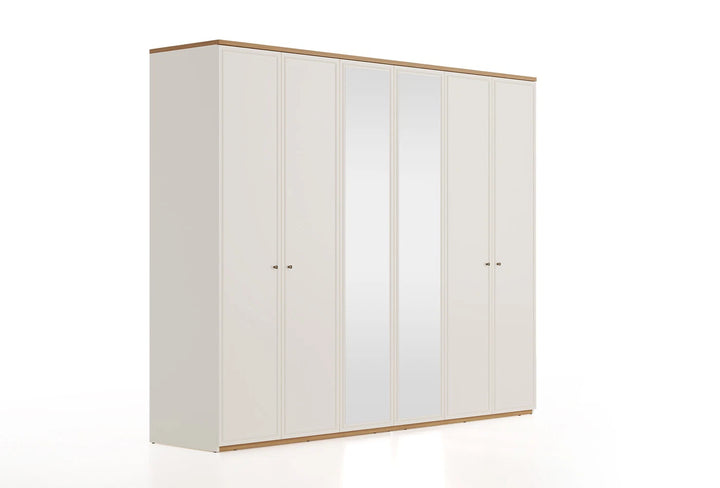 Fa profil részleteivel és nyérc színű fém fogantyúival minden térnek modern hangulatot kölcsönző Marsana 6 Ajtós gardróbszekrény, a fedelein használt natúr színű tükrökkel friss és tágas atmoszférát teremt. Tölgy és krém színkombinációjával figyelemre méltó Marsana 6 Ajtós gardróbszekrény, fiók és lassítóval ellátott sínrendszer részleteivel funkcionális használatot kínál.