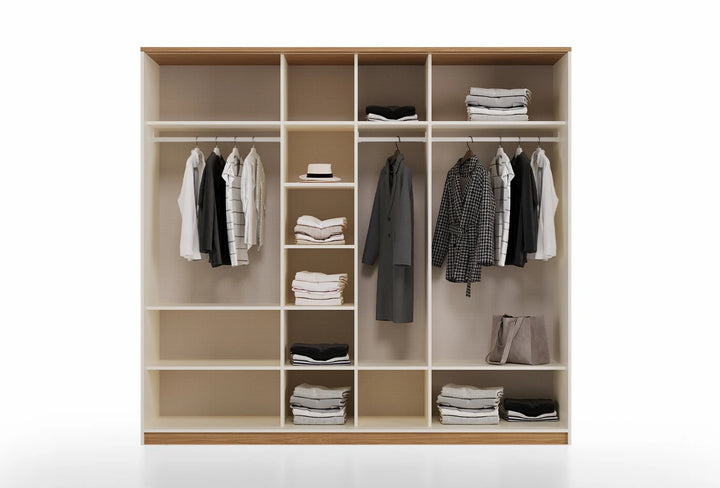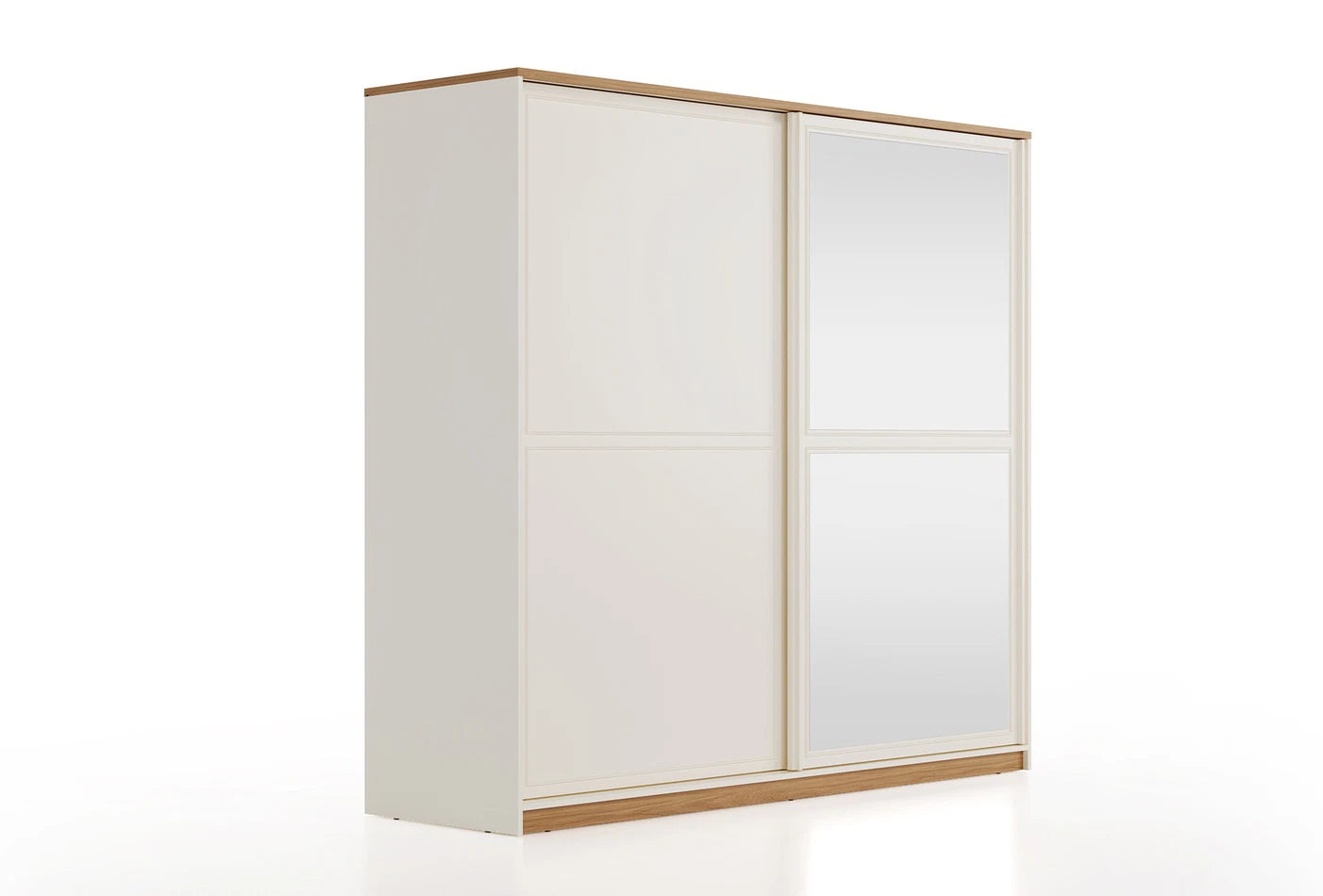 A tölgy és krém színkombináció natúr színű tükör használatával meleg és friss hangulatot biztosít az élettereknek, míg a lassítóval ellátott sínrendszer növeli a kényelmet a mindennapi használat során.