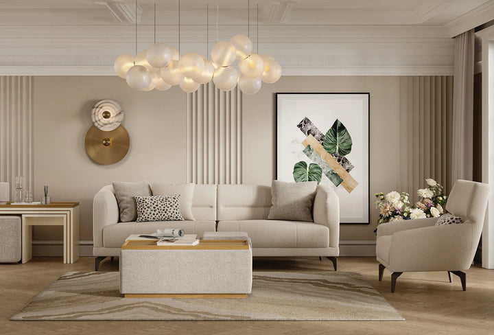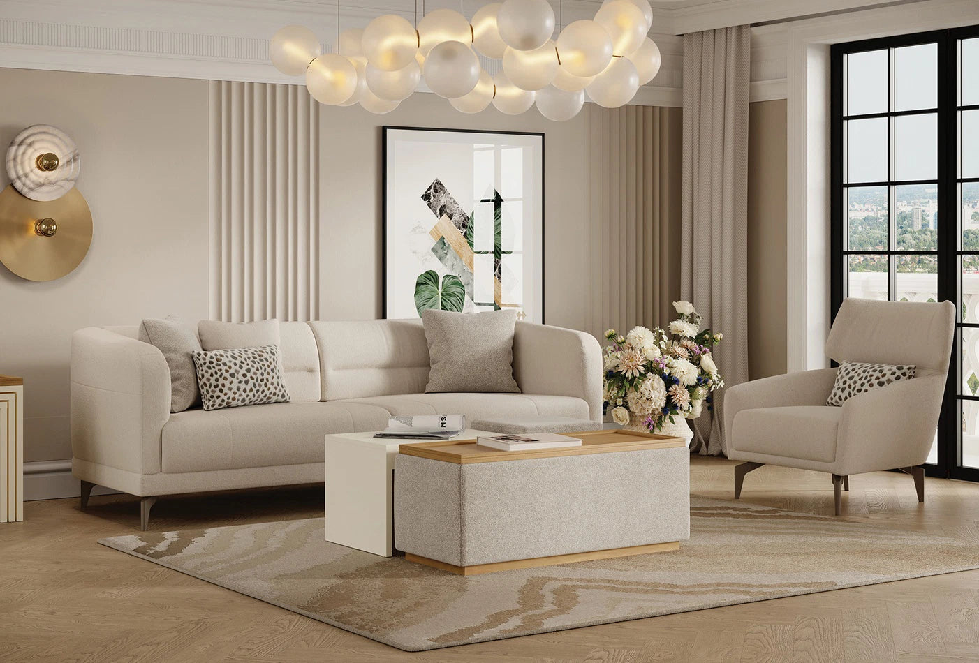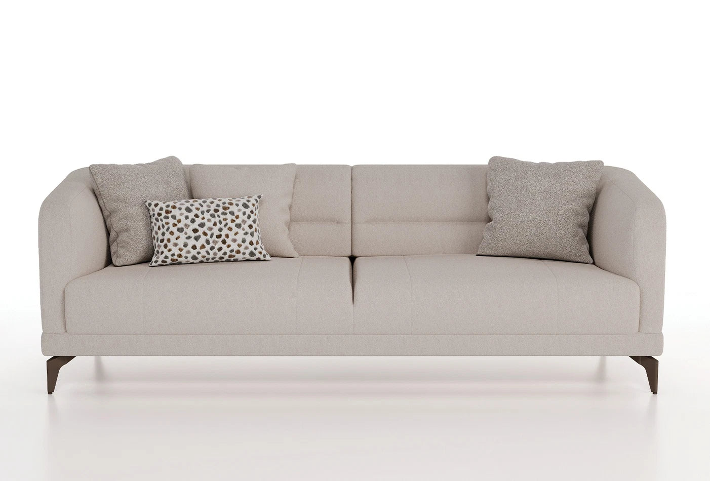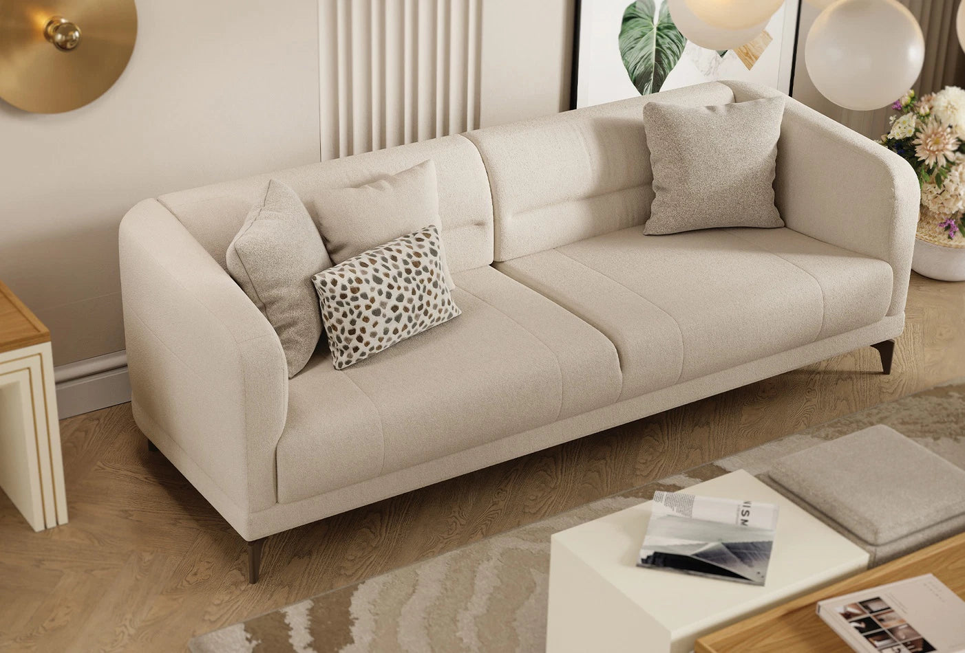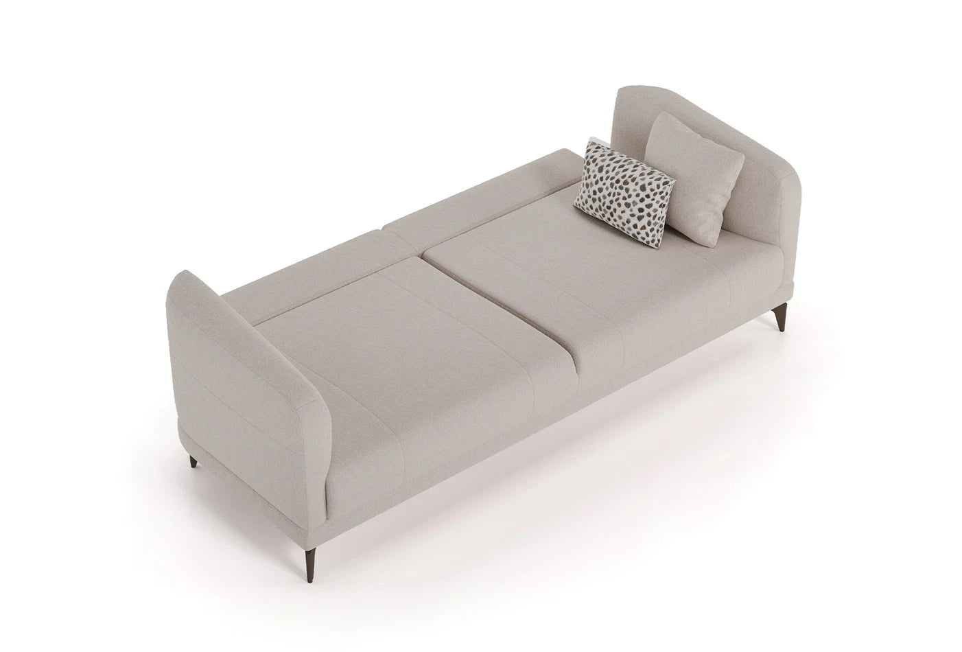 Letisztult vonalai és kortárs dizájnja által kiemelkedő Marsana 3 személyes Ágyazható Kanapé, bézs tónusaival és dekoratív díszpárnáival modern eleganciát kölcsönöz az élettereknek.