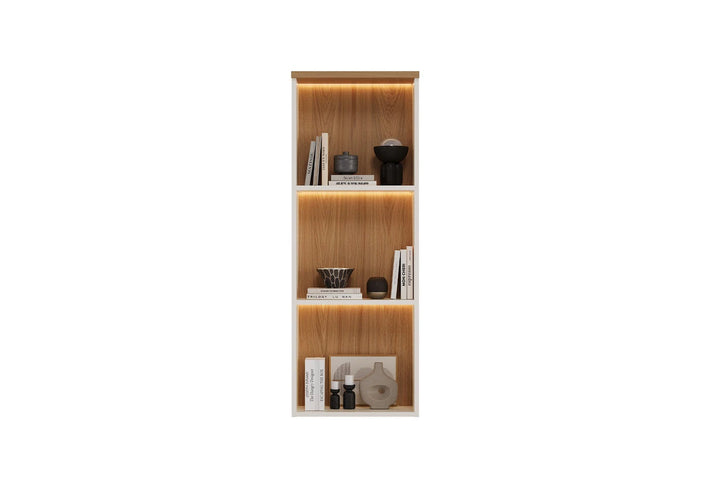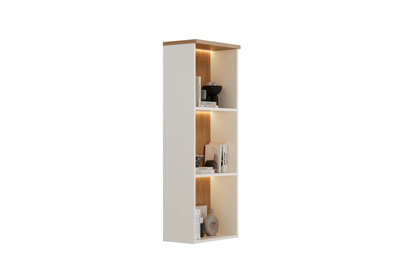 Természetes és modern fa tónusokat country dizájnnal ötvöző Marsana könyvespolc, tölgy és krém színkombinációjával hívja fel magára a figyelmet, míg világítási funkciójának köszönhetően egyszerre funkcionális és esztétikus megjelenést kínál.
