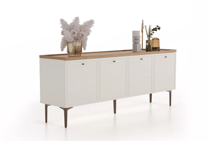 A country stílust modern részletekkel ötvöző Marsana tálalószekrényelegáns vonalaival eleganciát visz az életterekbe. Széles belső terével könnyű használatot kínáló Marsana tálalószekrény tölgy és krém színkombinációjával hívja fel magára a figyelmet.