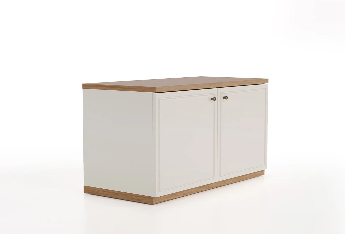 Nyérc színű fém fogantyú dizájnja hibátlan harmóniát teremt a tölgy és krém színkombinációval, miközben a lassítóval ellátott zsanér és sínrendszer kényelmes használati teret hoz létre.