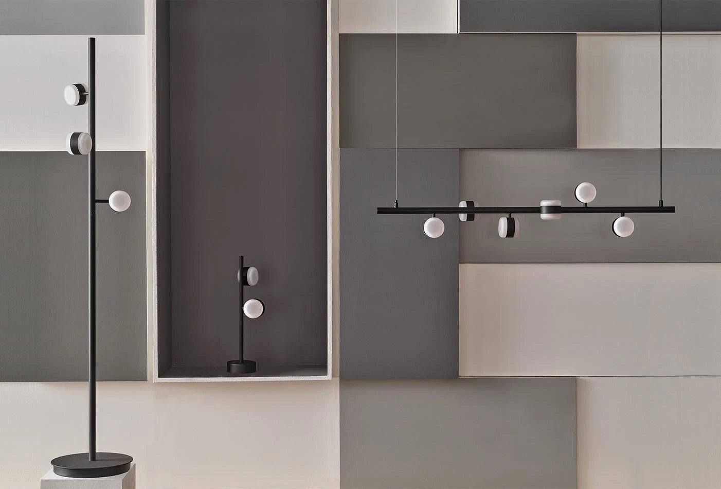 Fekete fém vázát led fényforrással kiegészítő OBLÓ VILÁGÍTÁS CSALÁD, az ipari stílus modern érintésének elegáns képviselőjeként különleges atmoszférát teremt a terekben.