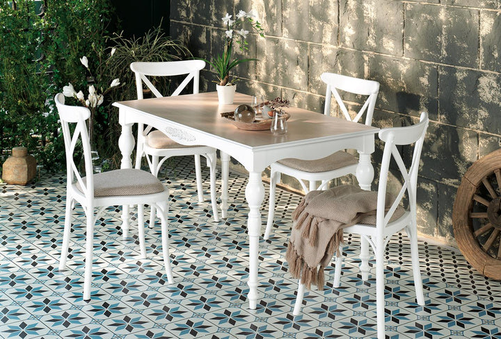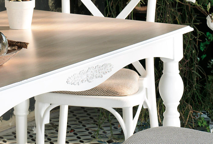 A fehér szín friss és nemes hatását klasszikus dizájn részletekkel ötvöző OLIVA KONYHAASZTAL, látványos atmoszférát teremt a konyhákban.