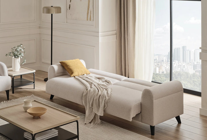 Ággyá könnyedén, egyetlen mozdulattal alakíthatjuk: a háttámláját egyszerűen csak hátra kell dönteni.