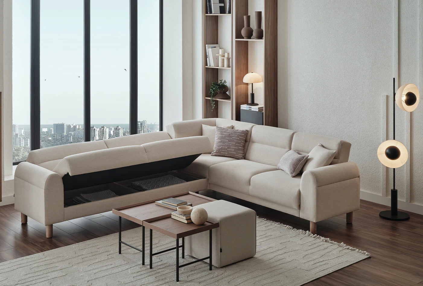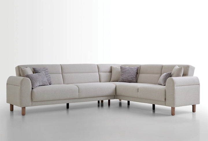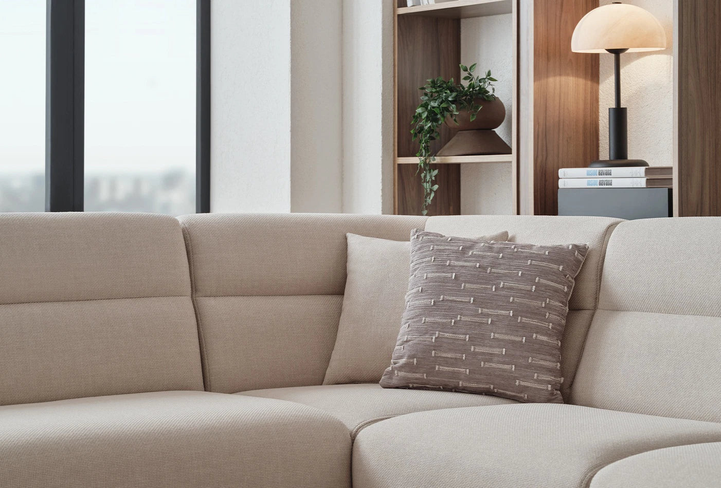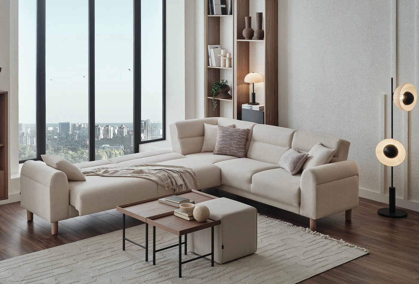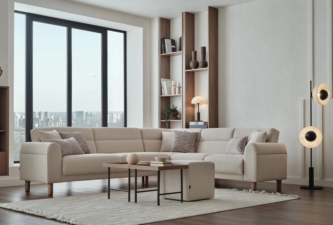 Az eleganciát és a funkcionalitást ötvöző Paloma L alakú kanapé esztétikus hangulatot kölcsönöz a modern élettereknek, miközben elegáns vonalvezetésével és 7 darab stílusos díszpárnájával minden sarkában egyedi kényelmet nyújt.