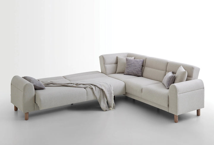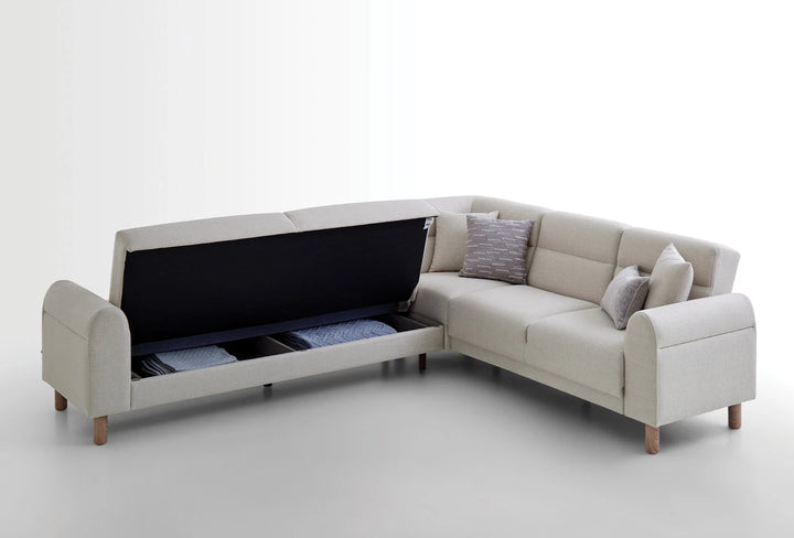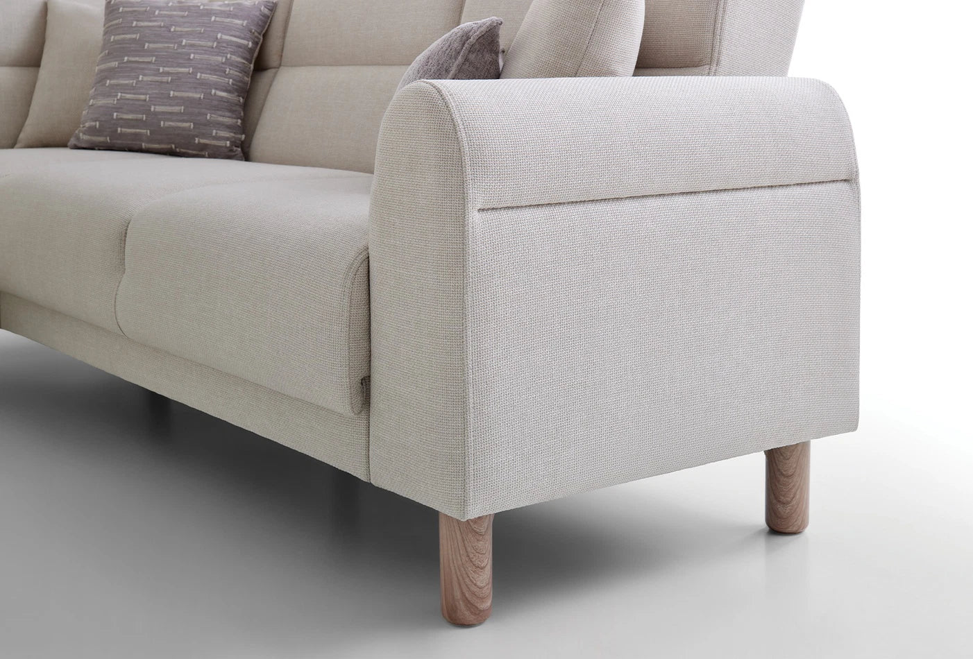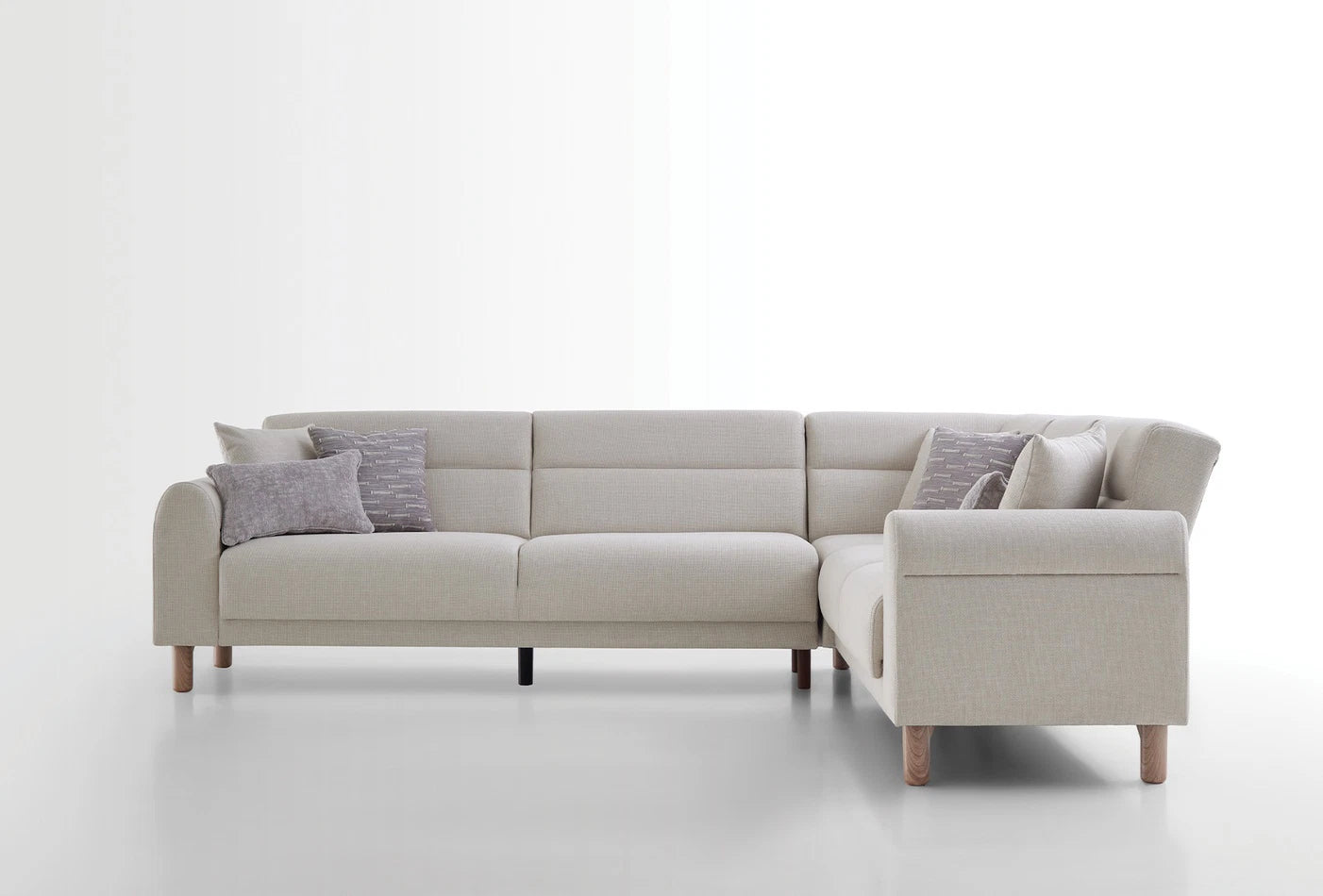 Fa vázszerkezete hosszú élettartamú használatot biztosít, míg tölgy színű polimer lábai minden szempontból kiemelik eleganciáját. A Paloma L alakú kanapé kényelmes szivacs szerkezetével pihentető ülést kínál, letörölhető szövet tulajdonságával pedig élvezetessé és praktikussá teszi a használatát.