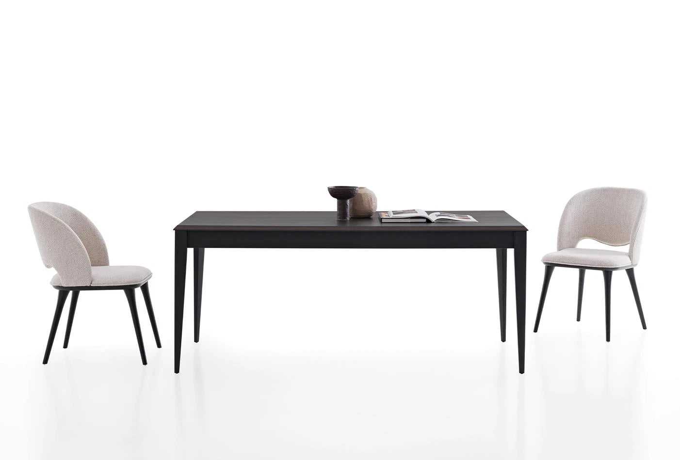A PARMA fix étkezőasztal nem csak színeiben modern, de formavilága is az: téglalap alakú asztallap és ék alakú fa lábak jellemzik.