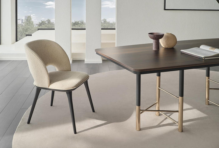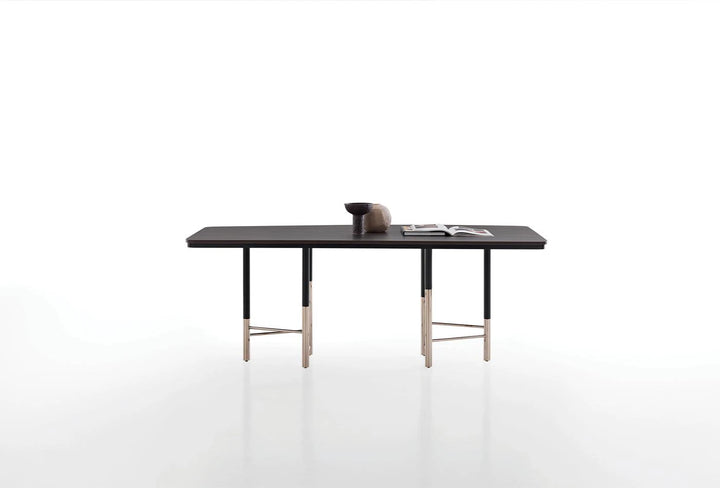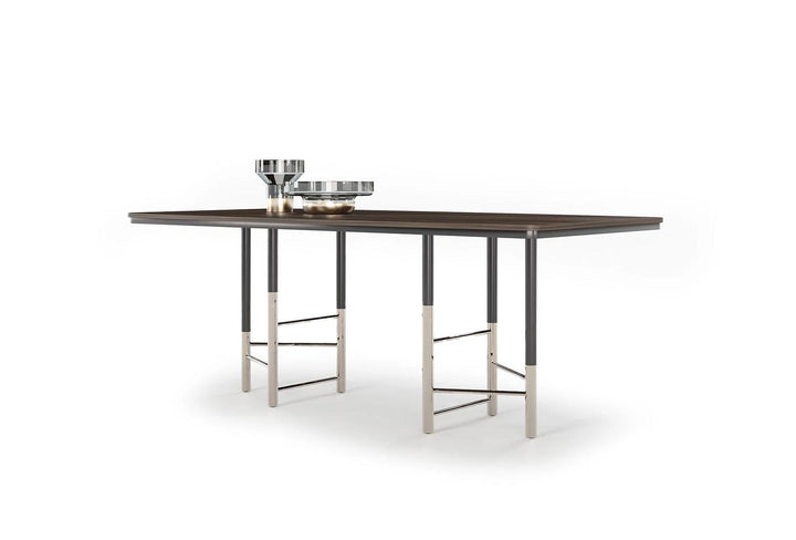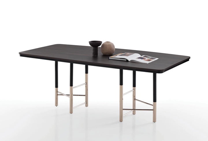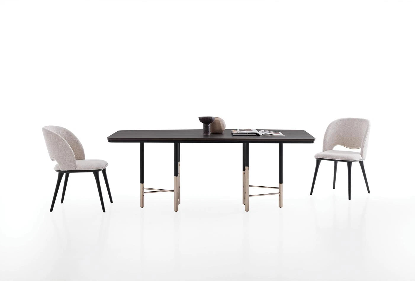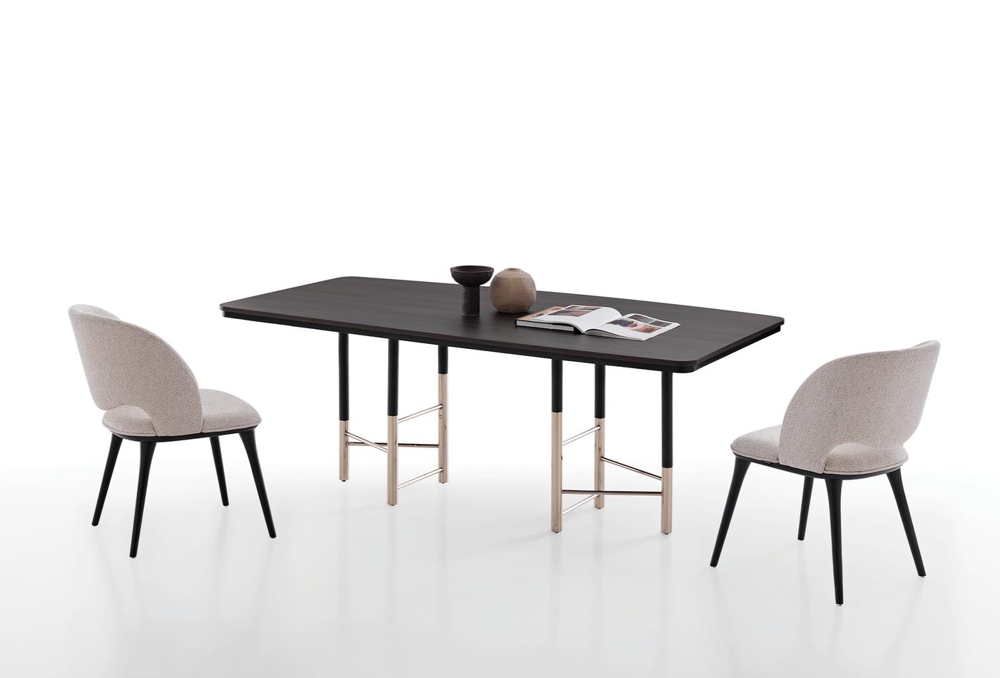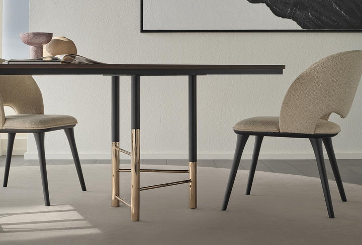 A PARMA fix étkezőasztal nem csak színeiben modern, de formavilága is az: téglalap alakú asztallap és bronzzal kombinált különleges fém lábszerkezet jellemzik.