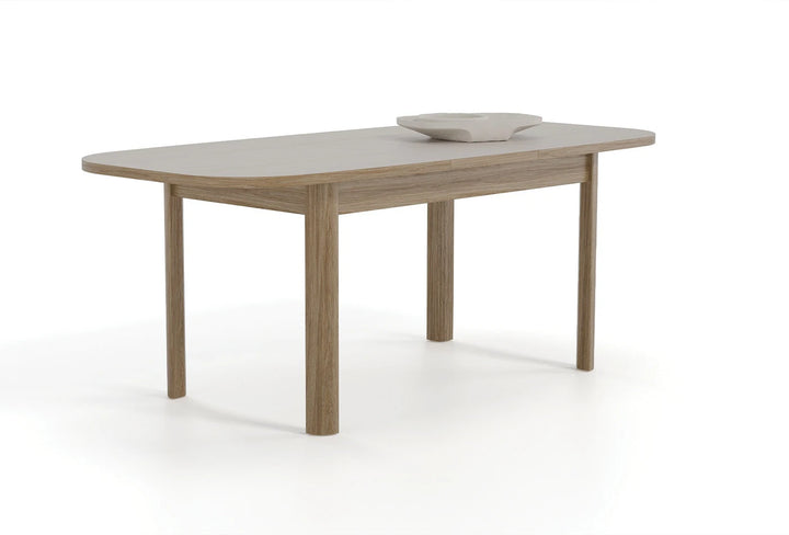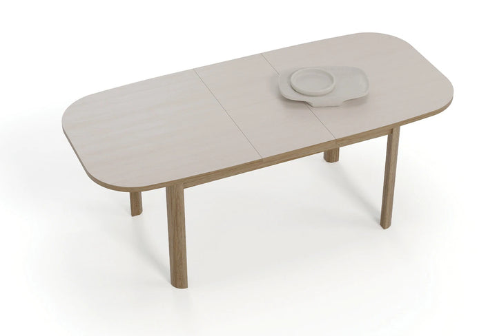 A PERGE BŐVÍTHETŐ ÉTKEZŐASZTAL a természetes tölgyfa melegségét a textil textúrájú krémszínűvel ötvözve békés és meghitt légkört teremt. Részleteivel masszív szerkezetet biztosít, ugyanakkor minimalista és elegáns dizájnt hoz létre.