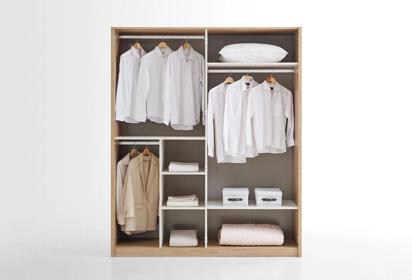 A lassítóval ellátott sínrendszer minden nyitáskor csendes és zökkenőmentes mozgást biztosít, miközben a dizájn természetessége és kényelme tökéletes atmoszférát kölcsönöz a hálószobáknak.