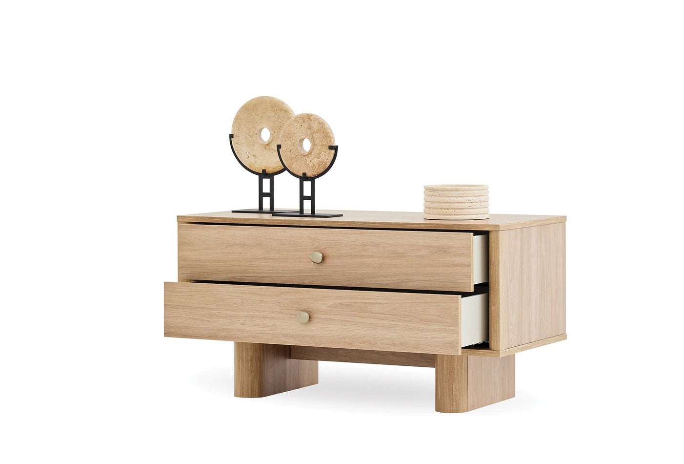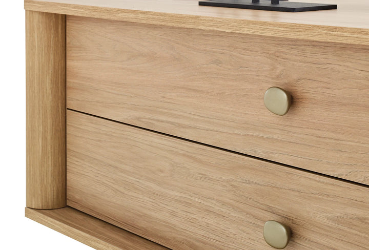 Modern fa textúrájával és tölgy színű alkalmazásával a Perge Tv Állvány a bohém dizájn elegáns és meleg szellemét tükrözi az életterekben. Az esztétikát és a funkcionalitást tökéletesen ötvöző Perge Tv Állvány, 2 fiókjával rendet teremt.