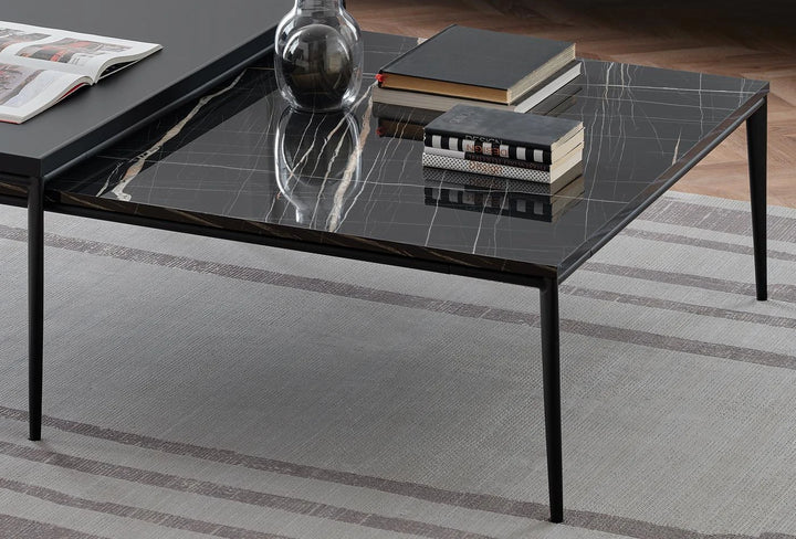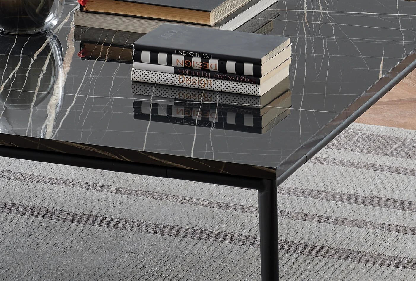 A fényűző megjelenés és kortárs stílus jellemzi a RIGA DOHÁNYZÓASZTALT, mely kifinomult eleganciájával hívja fel magára a figyelmet. Az exkluzív anyagok felhasználásával kialakított asztal márvány hatású felületével letisztult stílust képvisel. Az asztallap négyzet alakú, lába pedig fém.