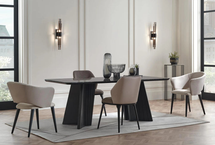 Szögletes formájával, ergonomikus kialakításával és matt fekete MDF lábaival a RIGA FIX ÉTKEZŐASZTAL igazán elegáns bútordarab.