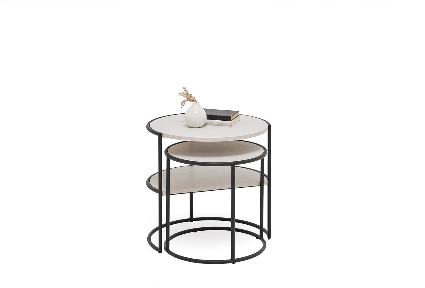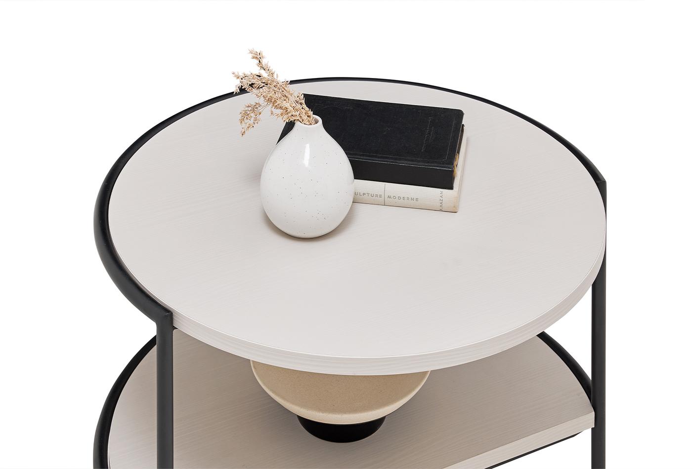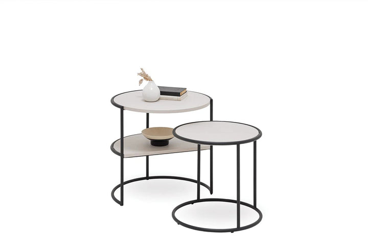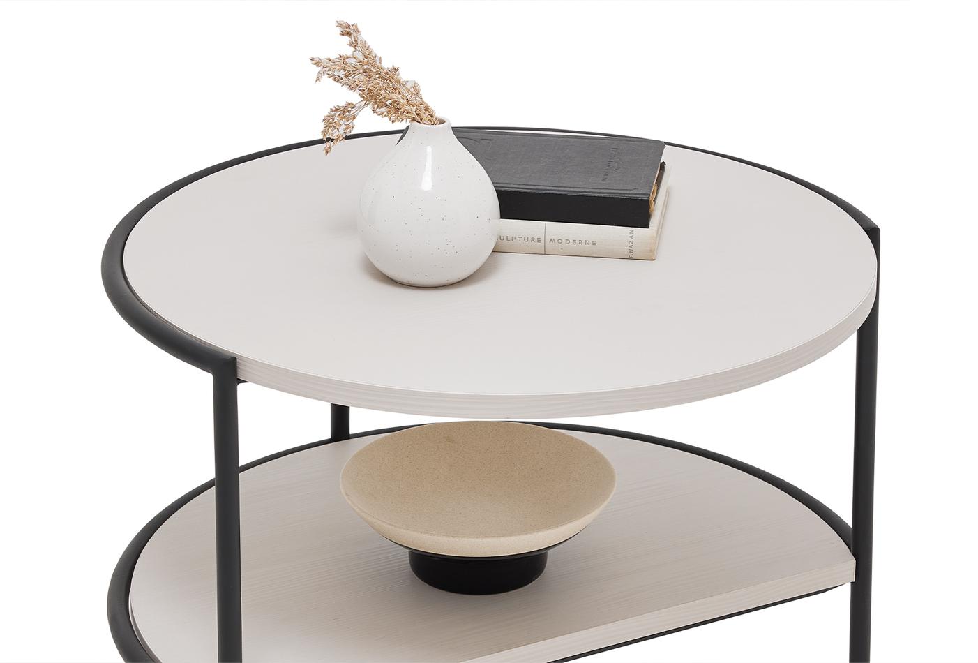 A fa textúráját világosszürke felületekkel ötvöző RITA dohányzóasztal, kerek formájával és fekete fém lábaival letisztult dizájnt mutat be. Funkcionális polc alkalmazásával praktikusságot ad az eleganciának, az egymásba illeszthető használat lehetőségével pedig tehermentesíti életterét.