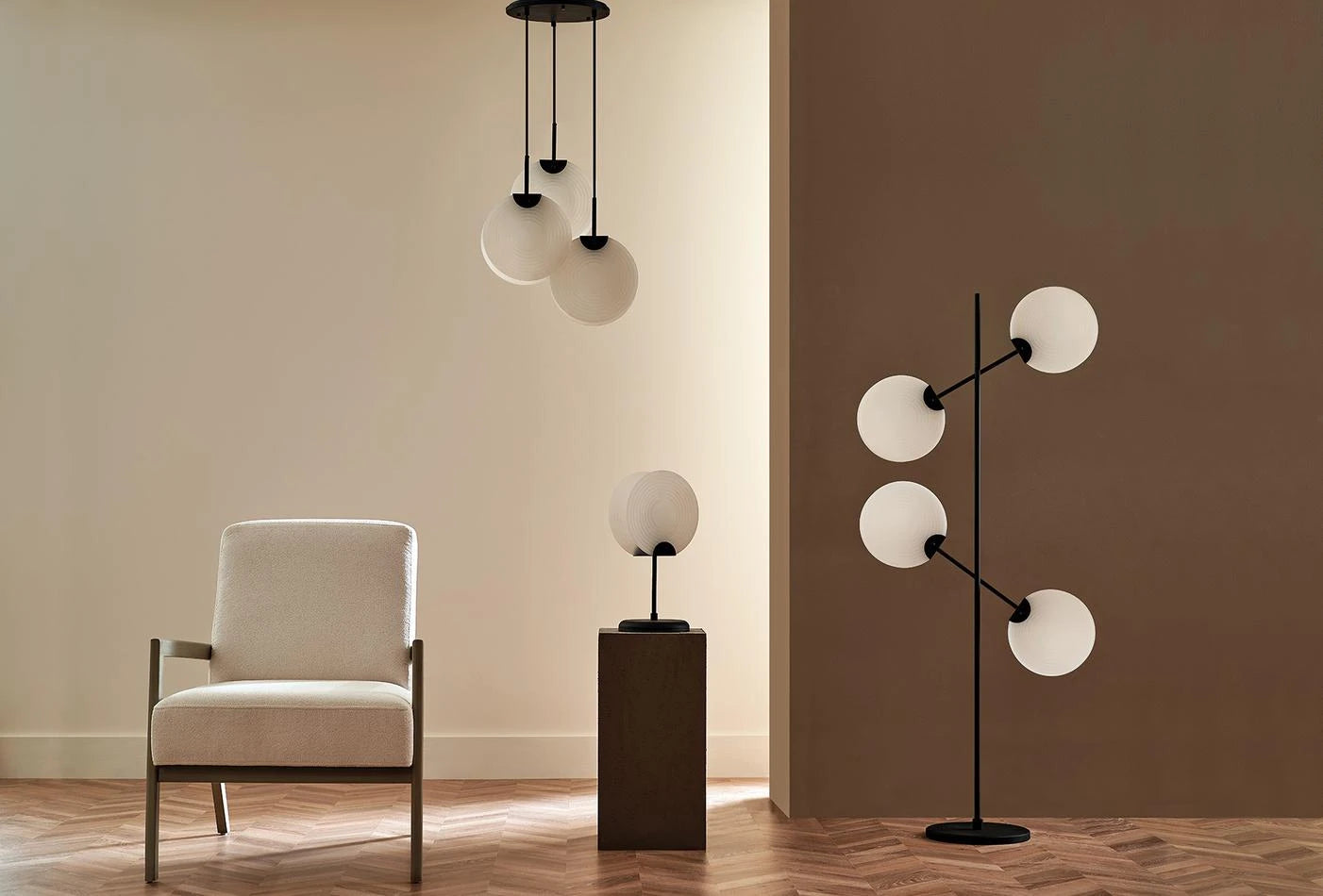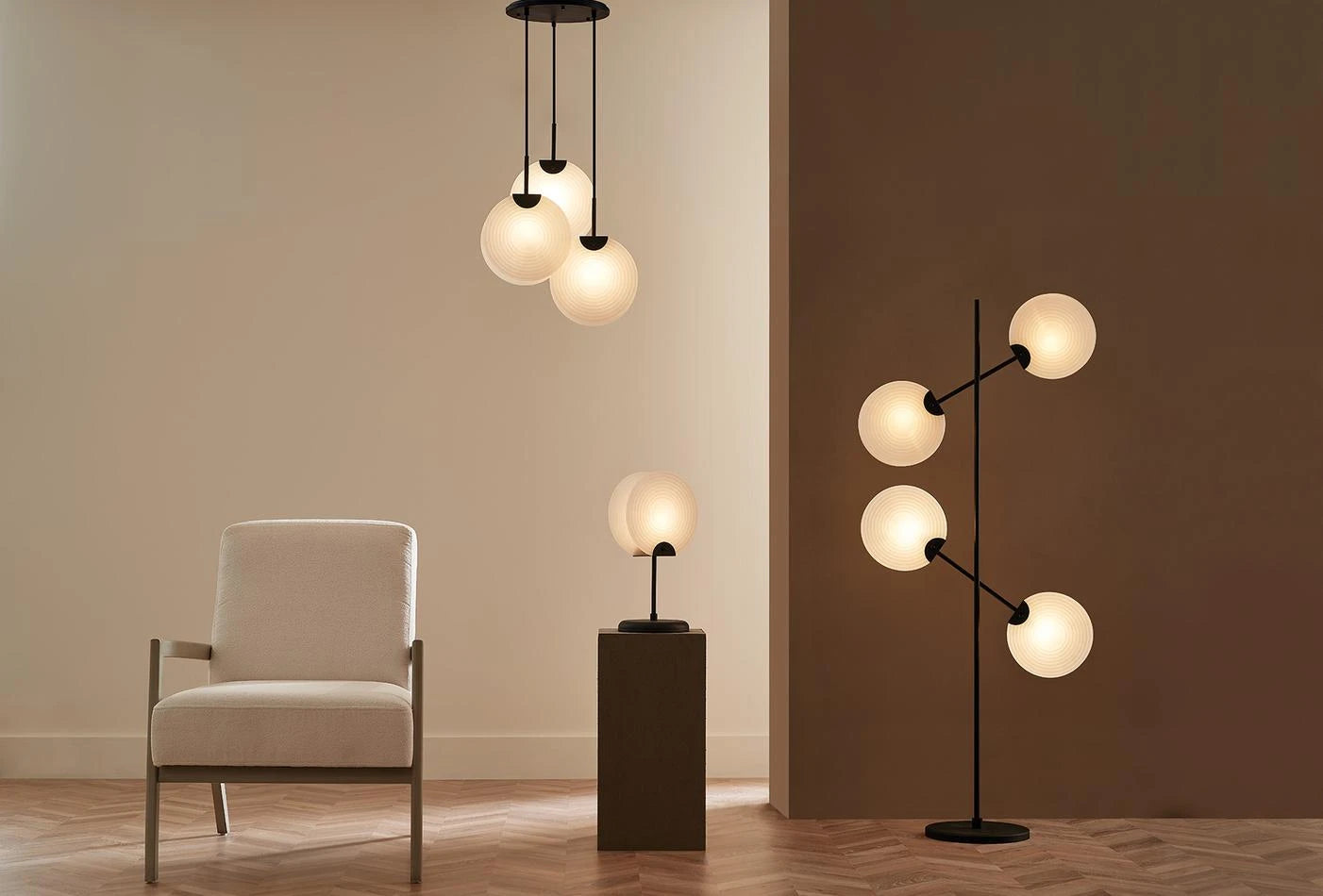 A SOLE LÁMPACSALÁD a fekete fémet fehér plexivel ötvözi, egyszerre minimalista és elegáns. A fekete-fehér igaz klasszikus párosítás, itt mégis modern felhangot kap. Az időtlen elegancia örök divat, ezért a lámpacsalád minden tagja nagyon trendi: négy búrás állólámpa és tripla föggőlámpa.