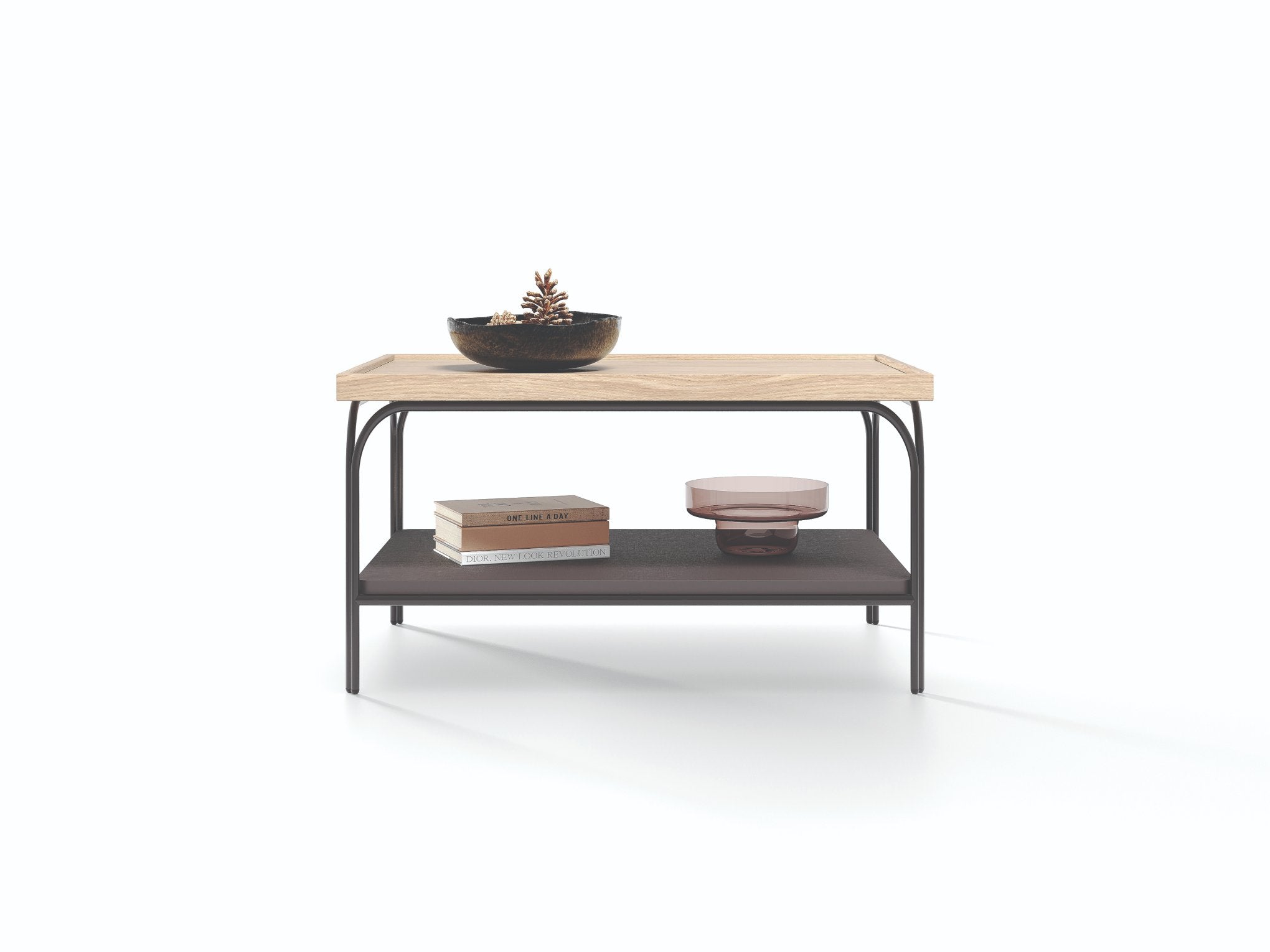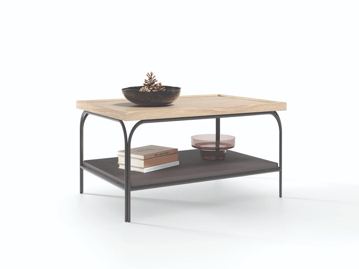 A világos tölgy színű asztallap természetes hatást kelt, míg a dohányzóasztal minimalista stílusának köszönhetően nagyszerűsége egyszerűségében rejlik.