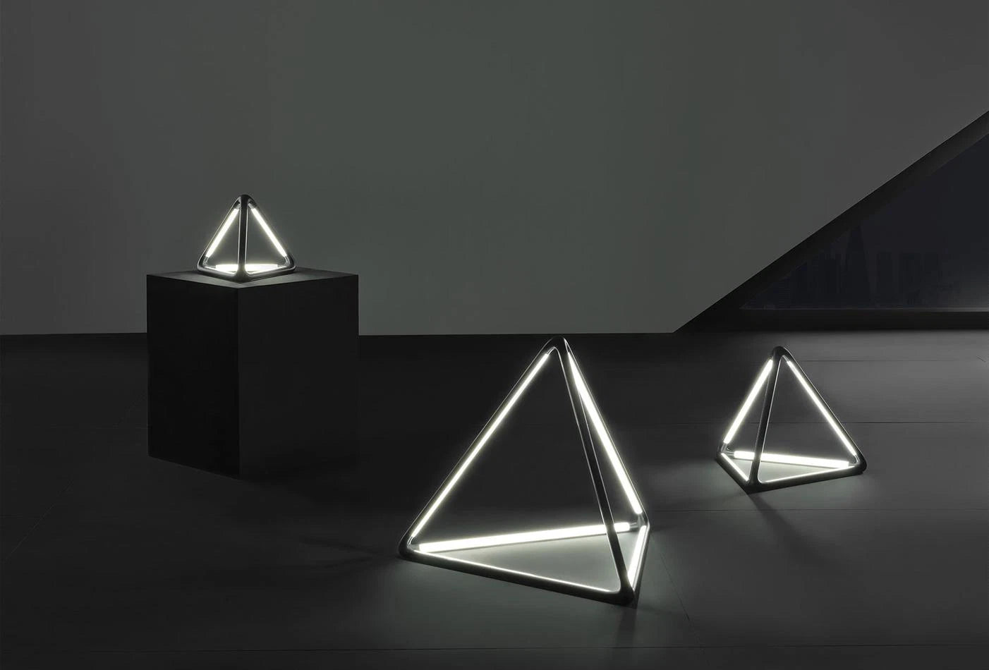A TETRA ÁLLÓLÁMPA a Visions 2023 sorozat egyik ikonikus darabja. Egy modern LED világítás, egyedi háromszög kialakítása 3D-s.