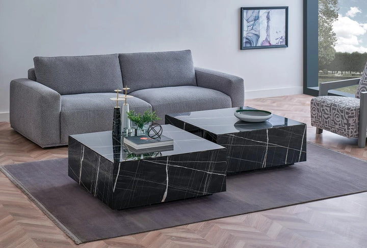 A TOSCA DOHÁNYZÓASZTAL lenyűgöz egyszerű, modern dizájnjával és elegáns márvány felületével.