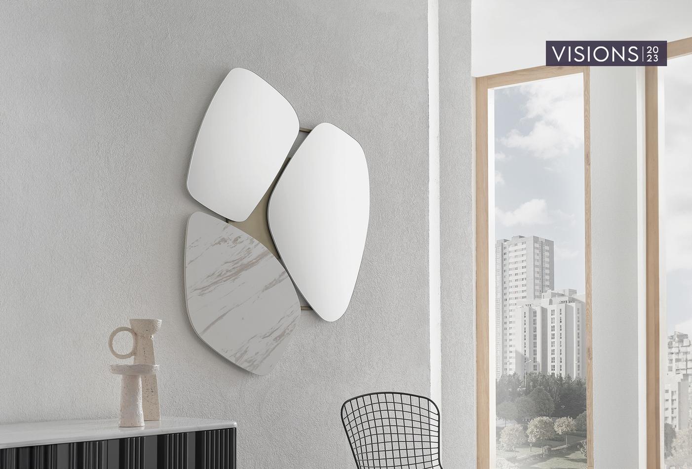 Amorf formája és natúr színű tükör használata tökéletesen kiegészíti a széria kortárs esztétikáját.