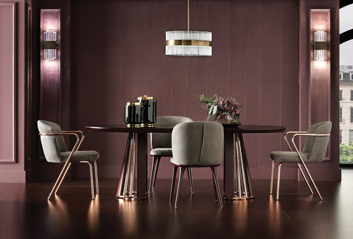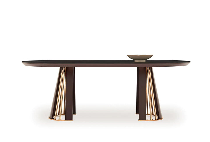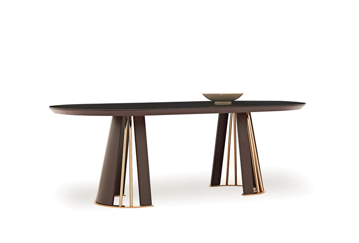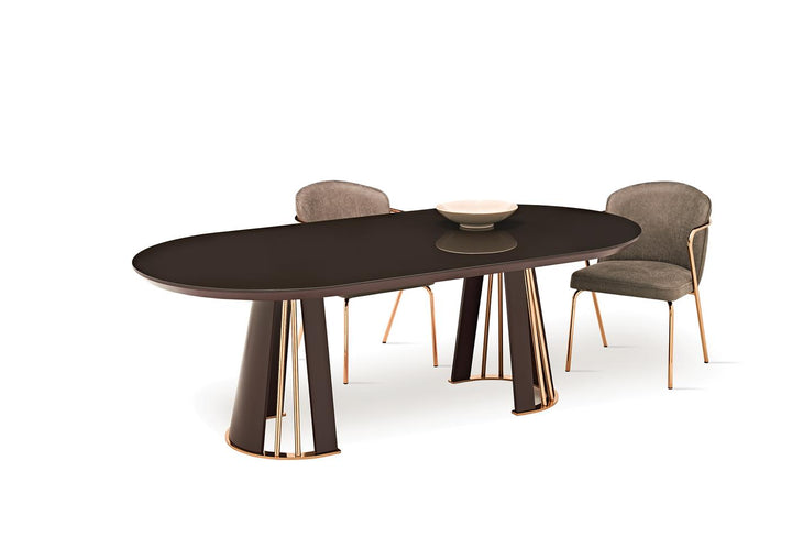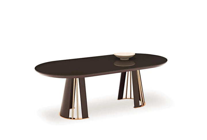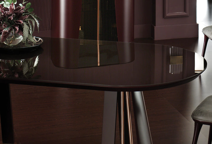 A VIENNA OVÁLIS ÉTKEZŐASZTAL lábain található rózsaarany színű luxus fém részletekkel nyűgözi le az embert. A nőies vonásokkal dominált dizájnvonal az üvegfelület-kezeléssel hibátlan kivitelezést mutat be.